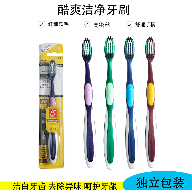 BQB正品高级独立包装 成人软毛大头牙刷竹炭硬毛 牙刷软毛批发