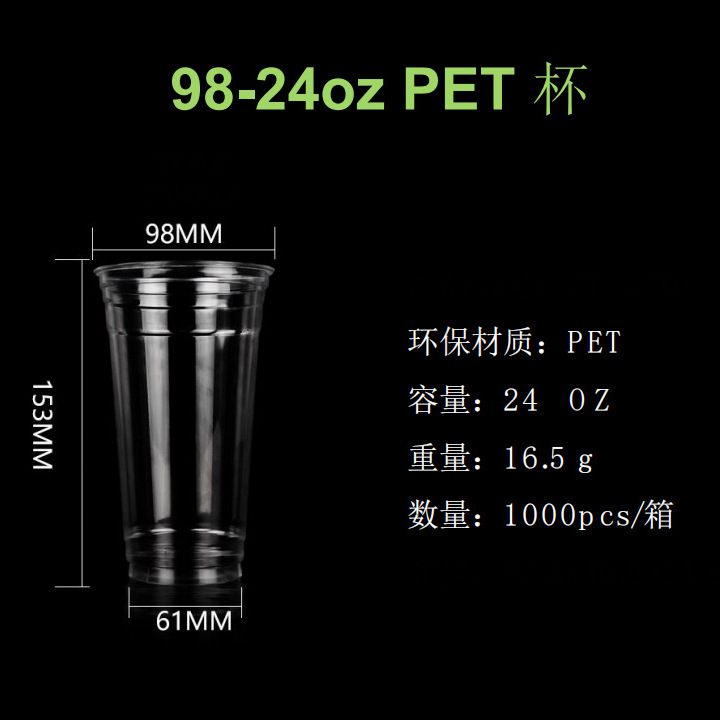 一次性奶茶杯带盖批发货源 98口径pet冷饮杯柠檬茶果汁杯塑料杯子