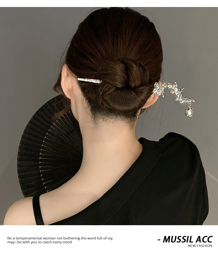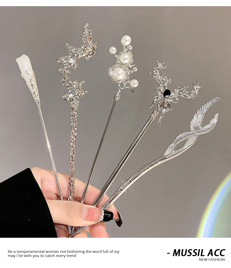 金属发簪女夏新中式盘发器发钗后步摇簪子头饰