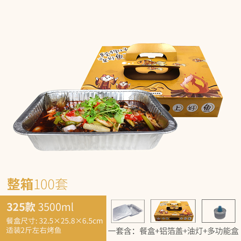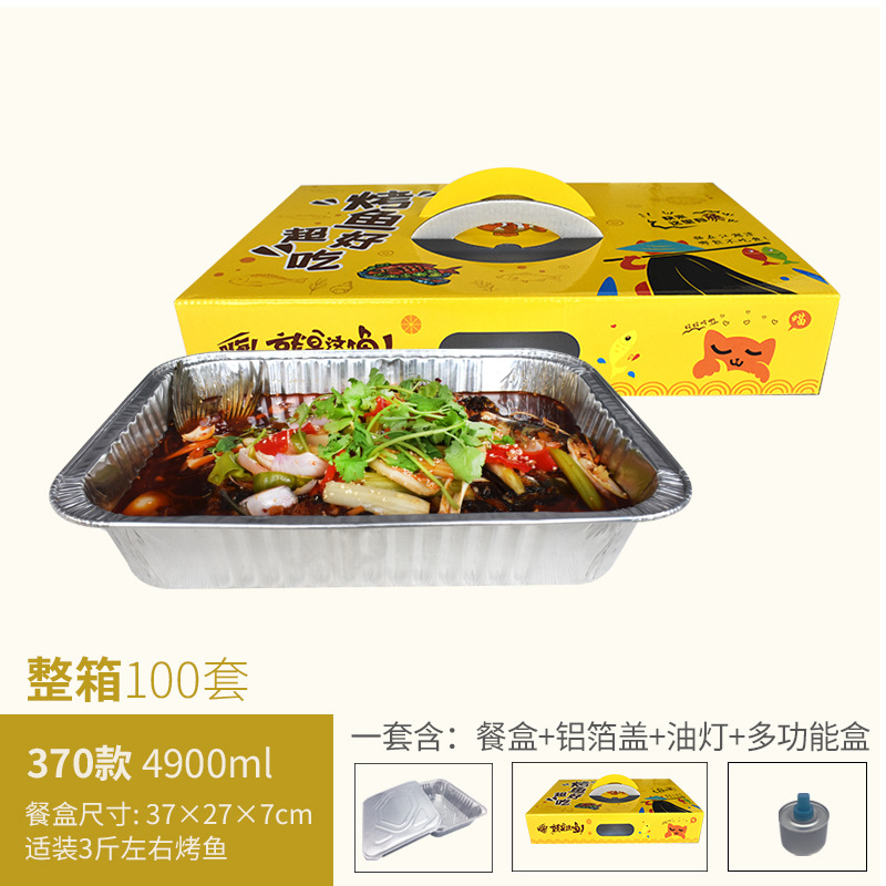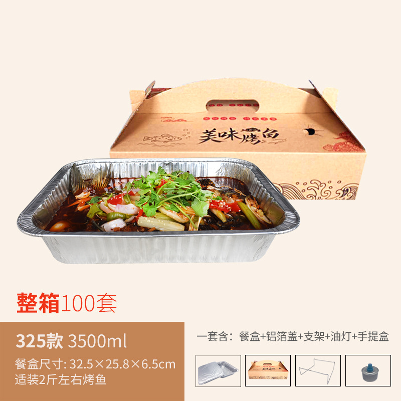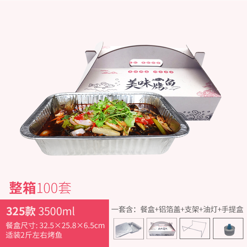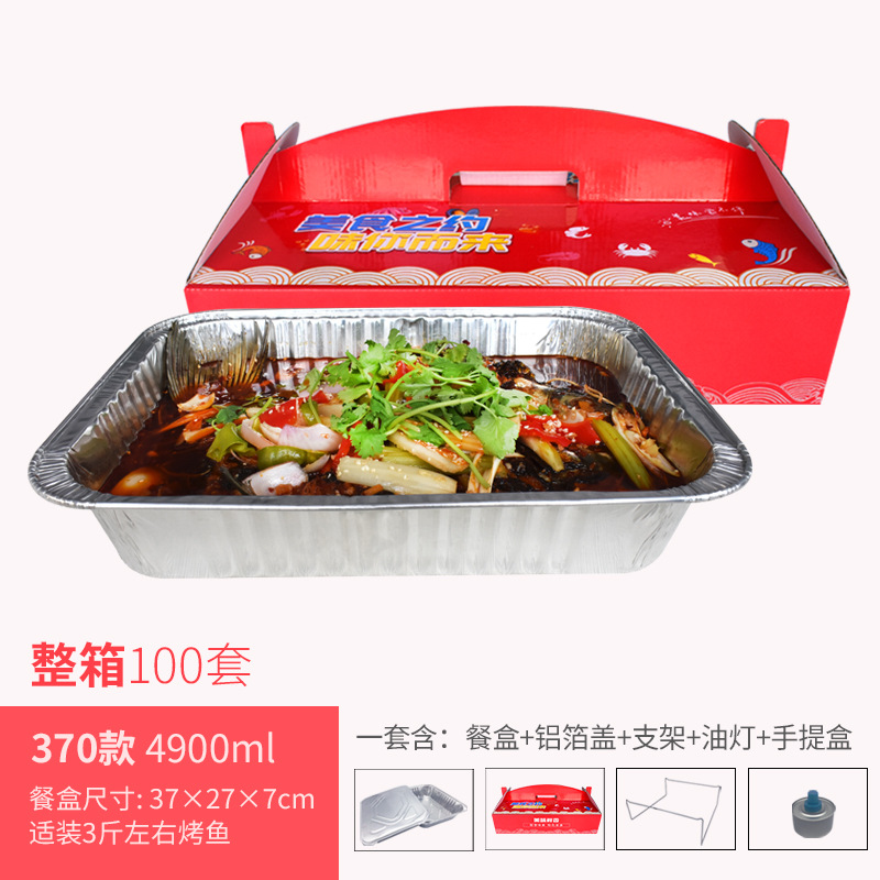 烤鱼外卖打包盒锡纸盒锡纸烤鱼盘手提套装加热一次性餐盒铝箔餐盒