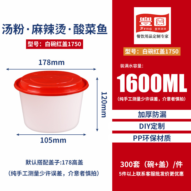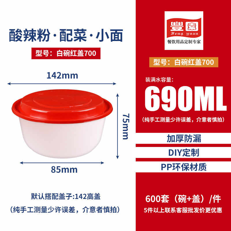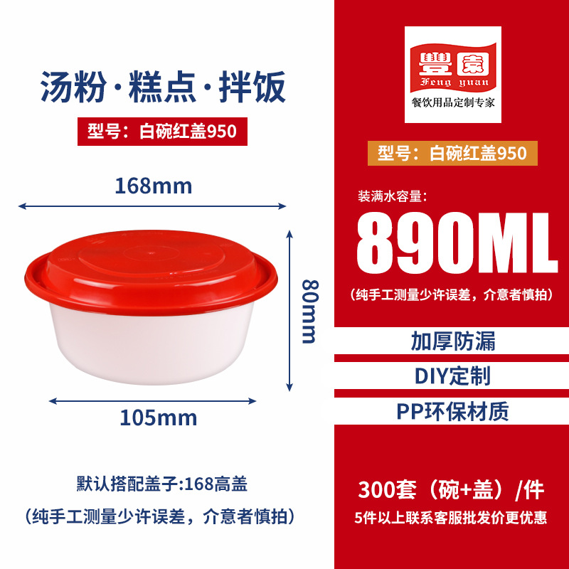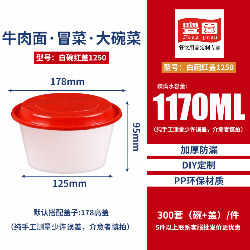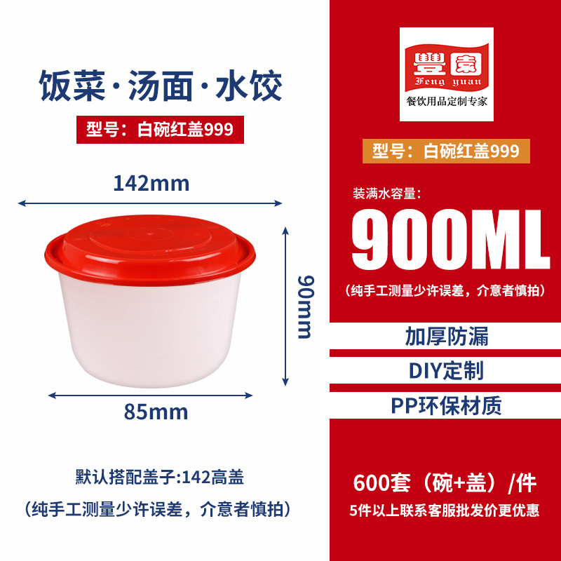 绿保康一次性快餐盒打包饭盒塑料圆形白色一次性透明外卖打包碗