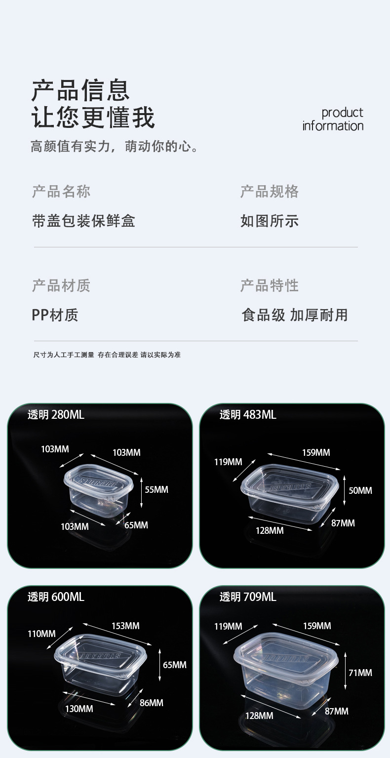 一次性餐盒保鲜加厚塑料水果捞打包盒透明长方形带盖便当饭盒批发