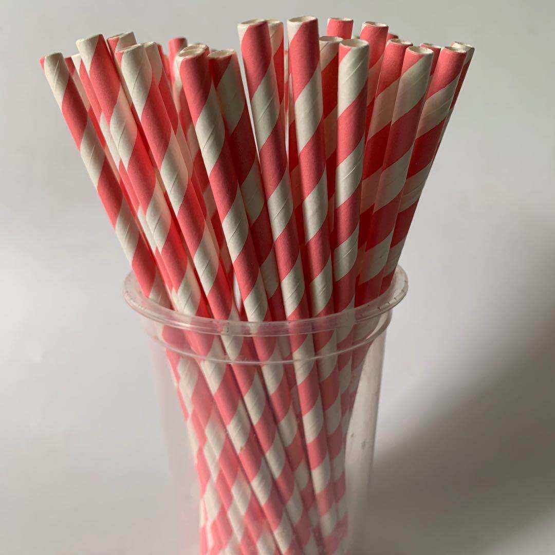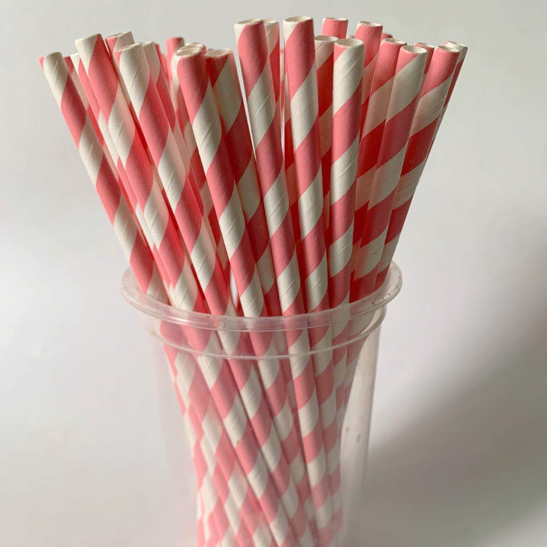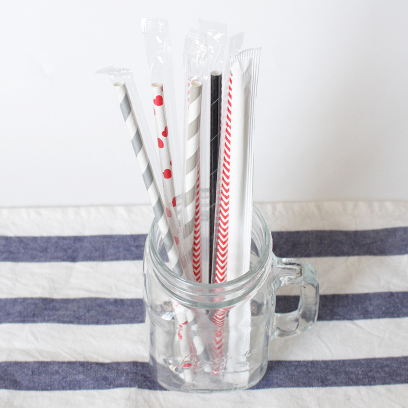 一次性纸吸管独立包装 彩色条纹白色吸管 可降解牛皮纸质吸管