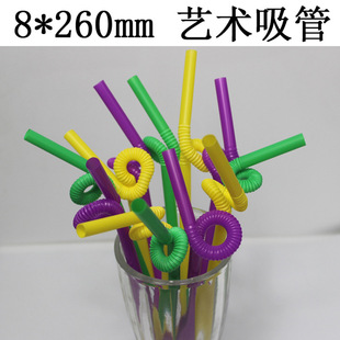 一次性单支膜包独立装吸管弯曲造型彩色艺术吸管果汁饮料吸管