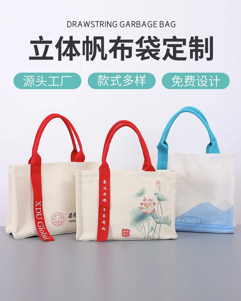 覆膜帆布立体袋定制空白创意logo伴手礼环保广告帆布托特包定做