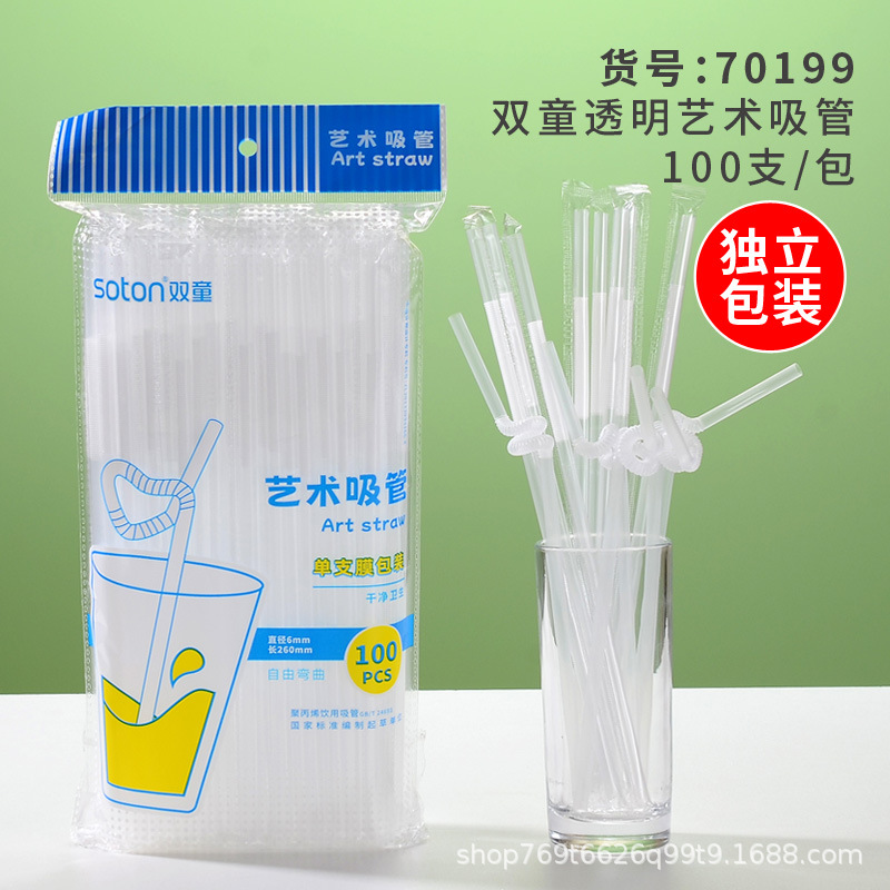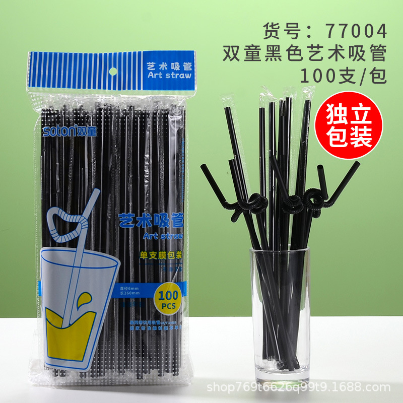 包邮双童一次性艺术吸管单弯创意造型奶茶果汁彩色塑料100支71035