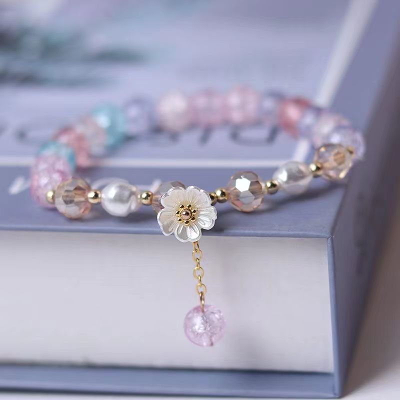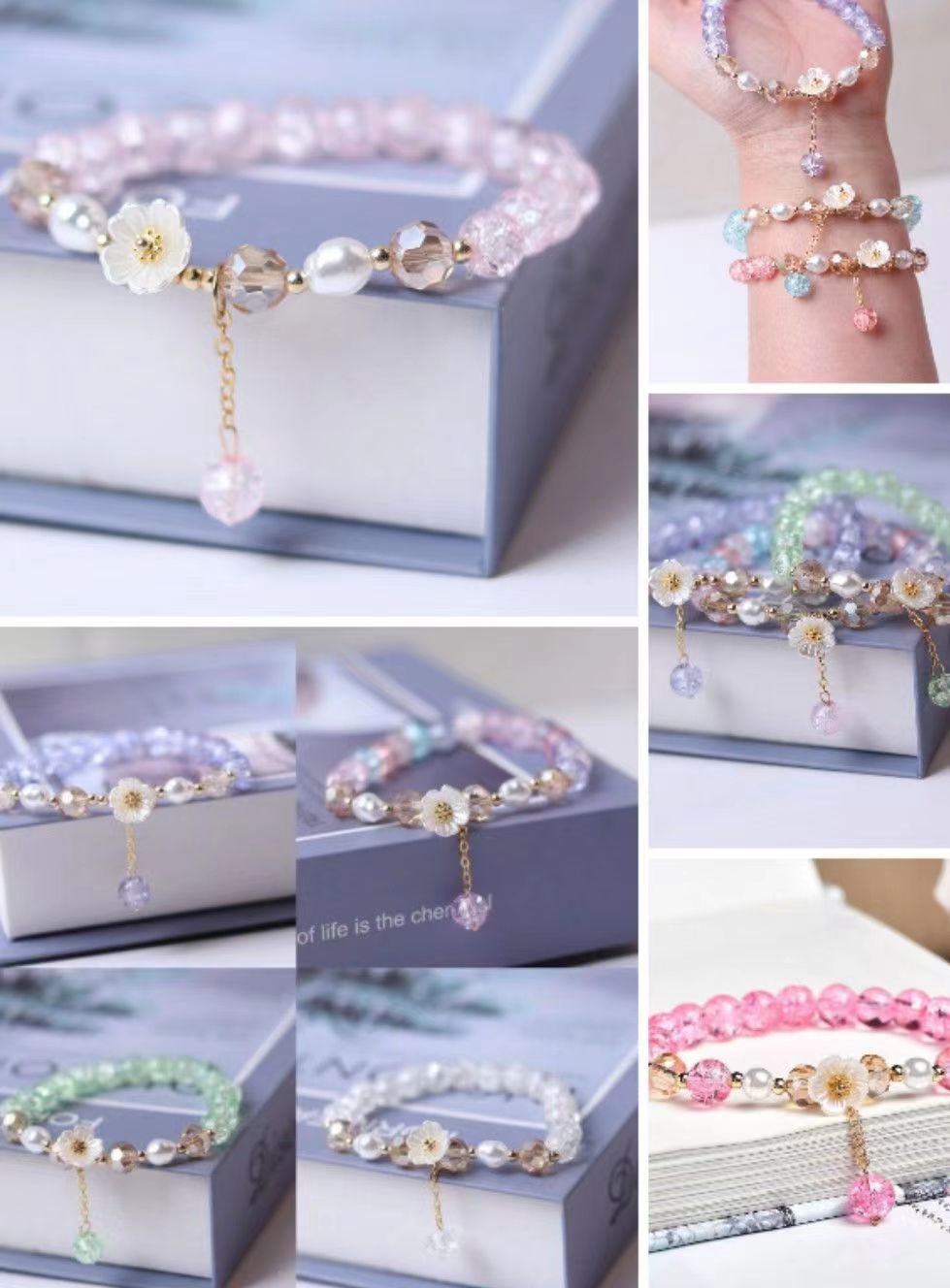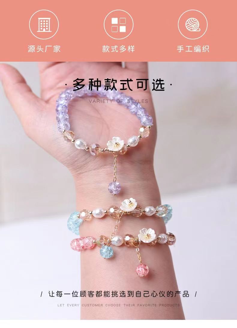 新款日韩爆花水晶串珠手链女生太阳花学生DIY小雏菊手链手串批发