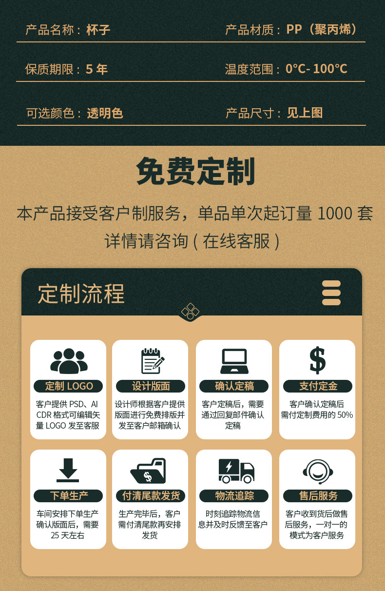 | transparent cup 200ml (2000 pcs per box)(透明杯200ml(一箱2000个)) | USD $17.06 | 10000 piece available |
