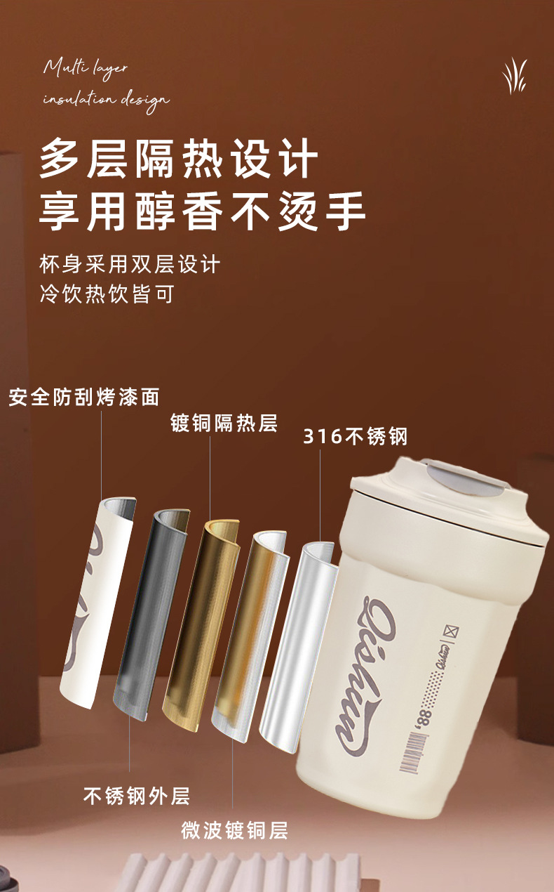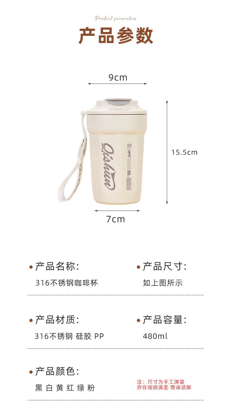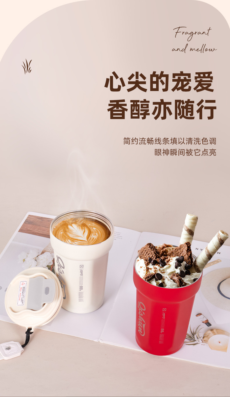 网红咖啡杯316不锈钢保温杯 高颜值便携欧式随手杯男女情侣水杯