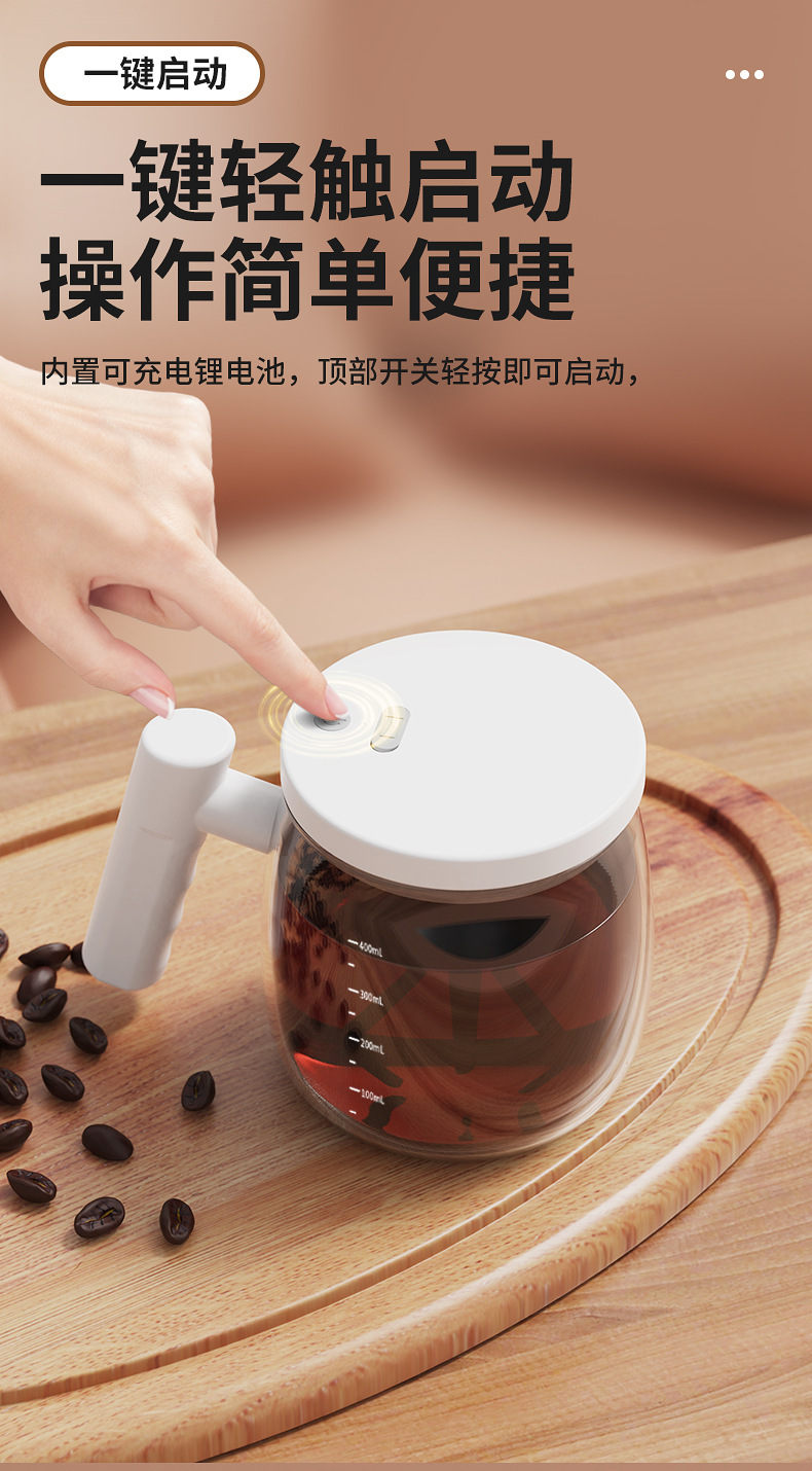 充电玻璃搅拌杯新款咖啡杯家用饮水杯蛋茶搅拌冲饮杯围炉煮茶杯子