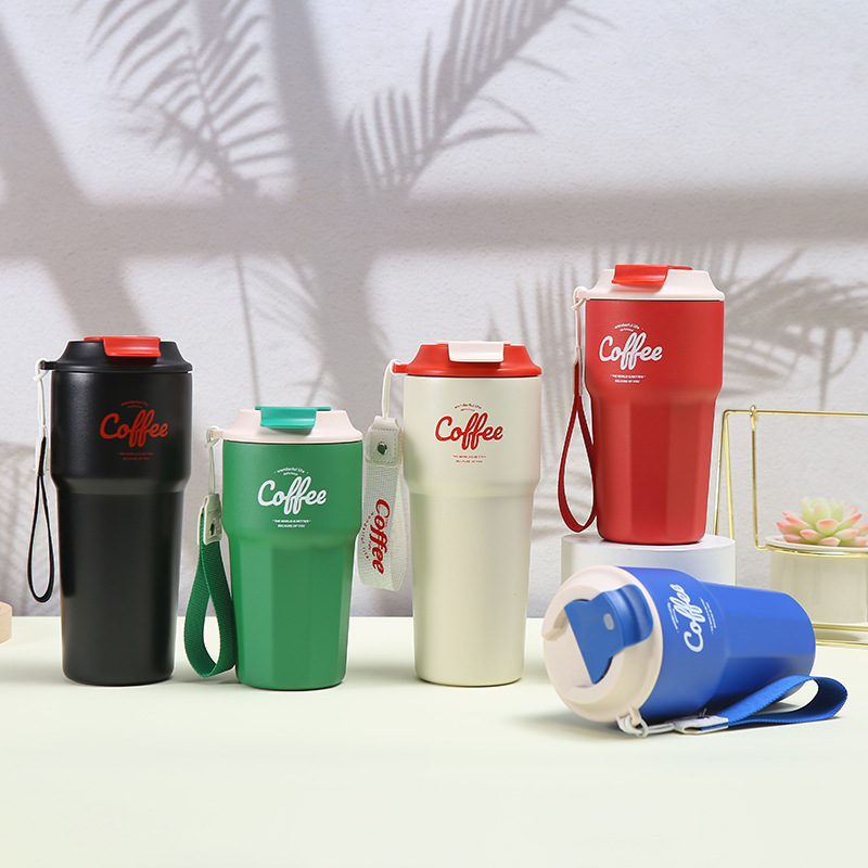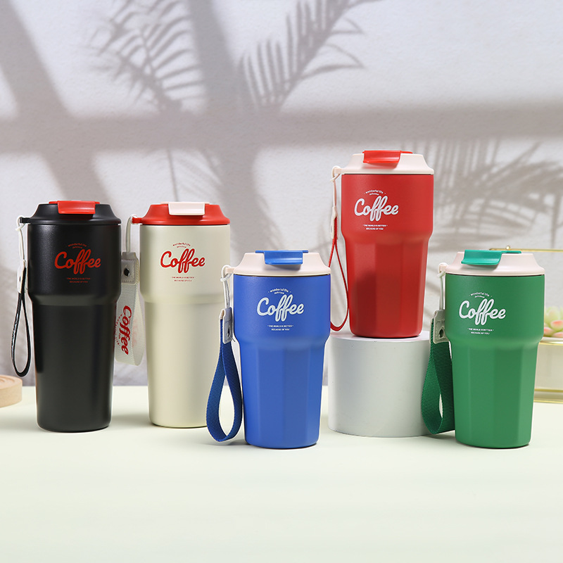 跨境304不锈钢咖啡杯大容量高颜值双层随手杯户外真空便携保温杯