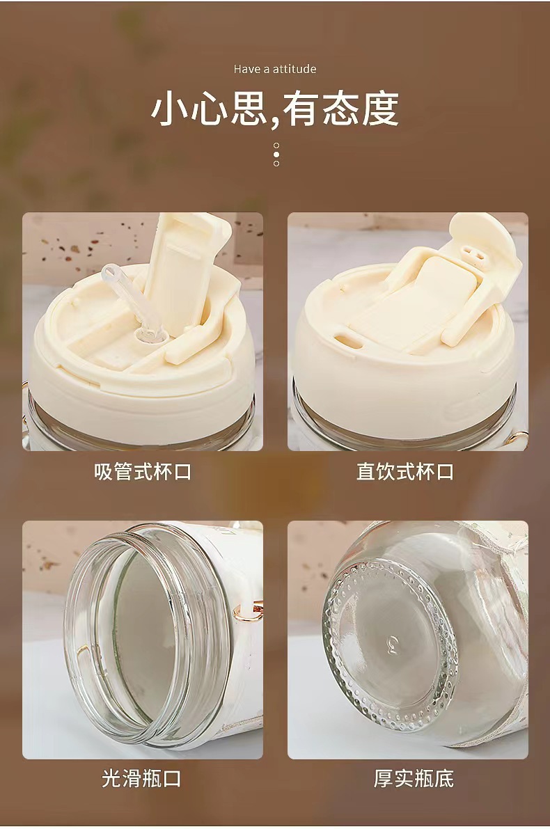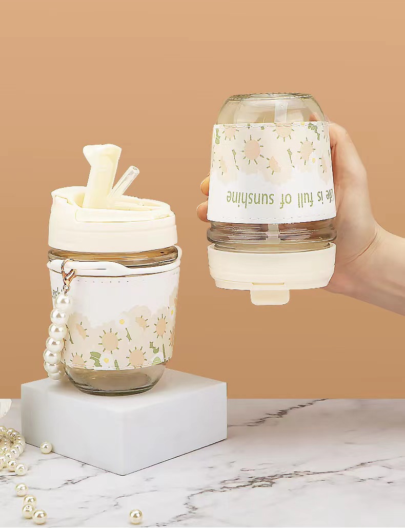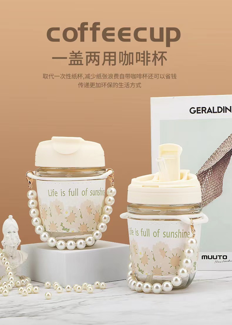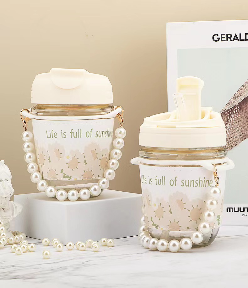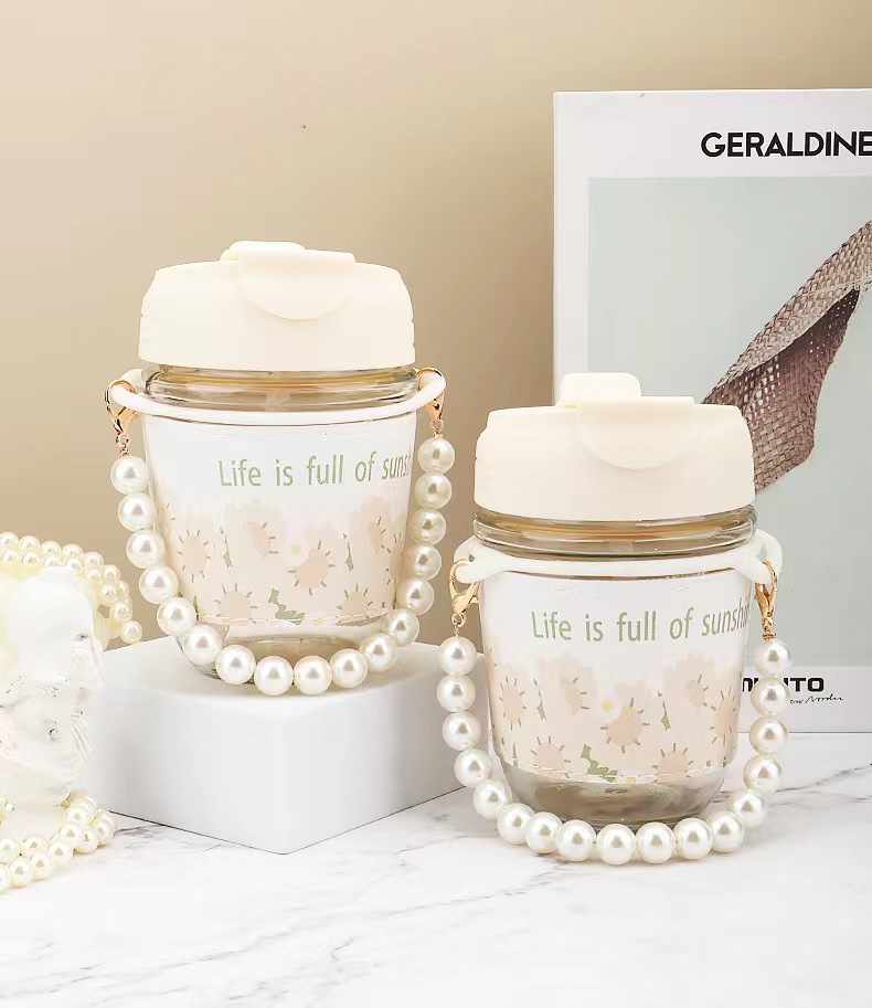 高颜值玻璃水杯女生学生小清新可爱双饮珍珠ins风便携咖啡杯子