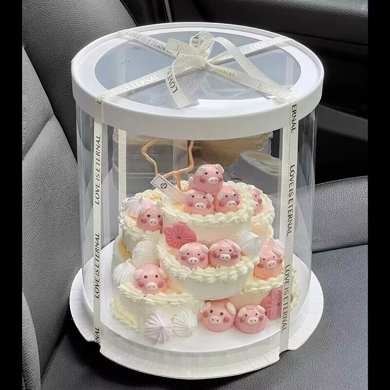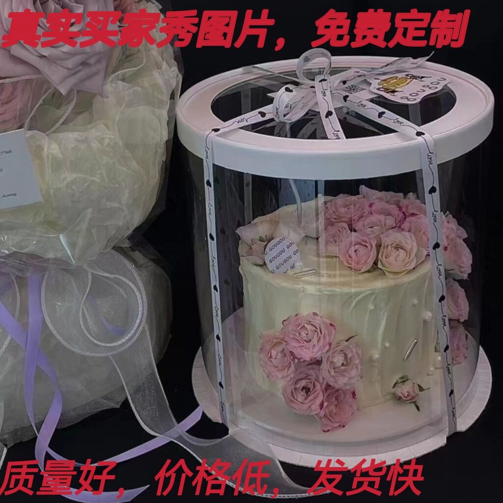 圆形蛋糕盒透明蛋糕盒生日烘焙包装4寸6寸8寸10寸单层双层高批发