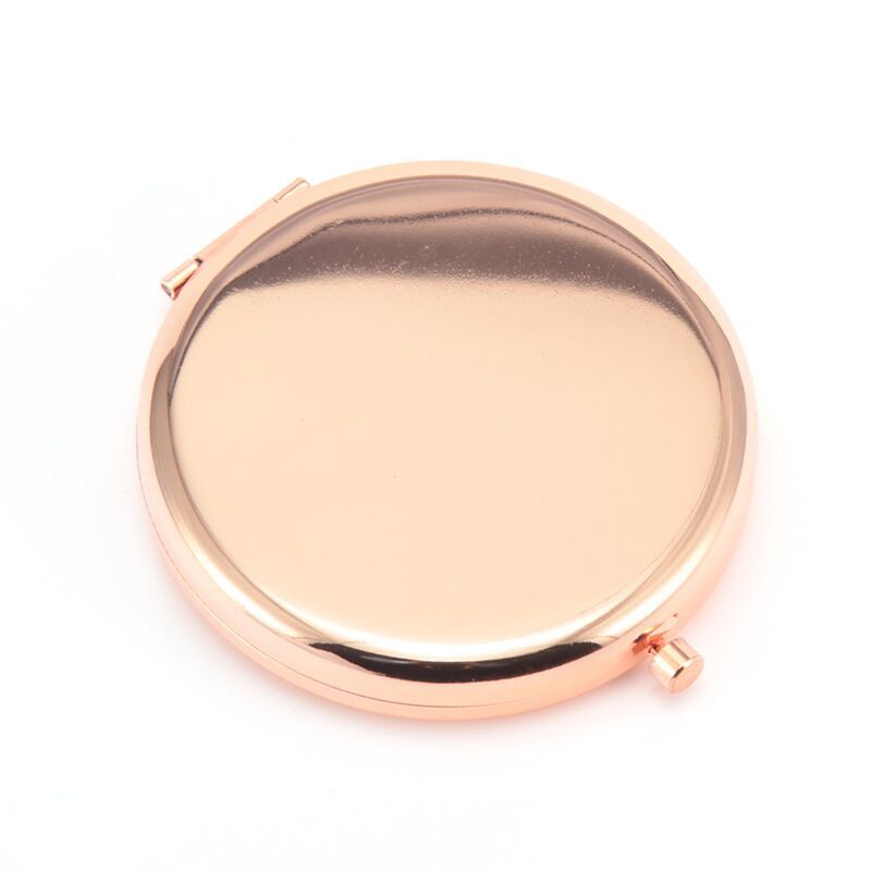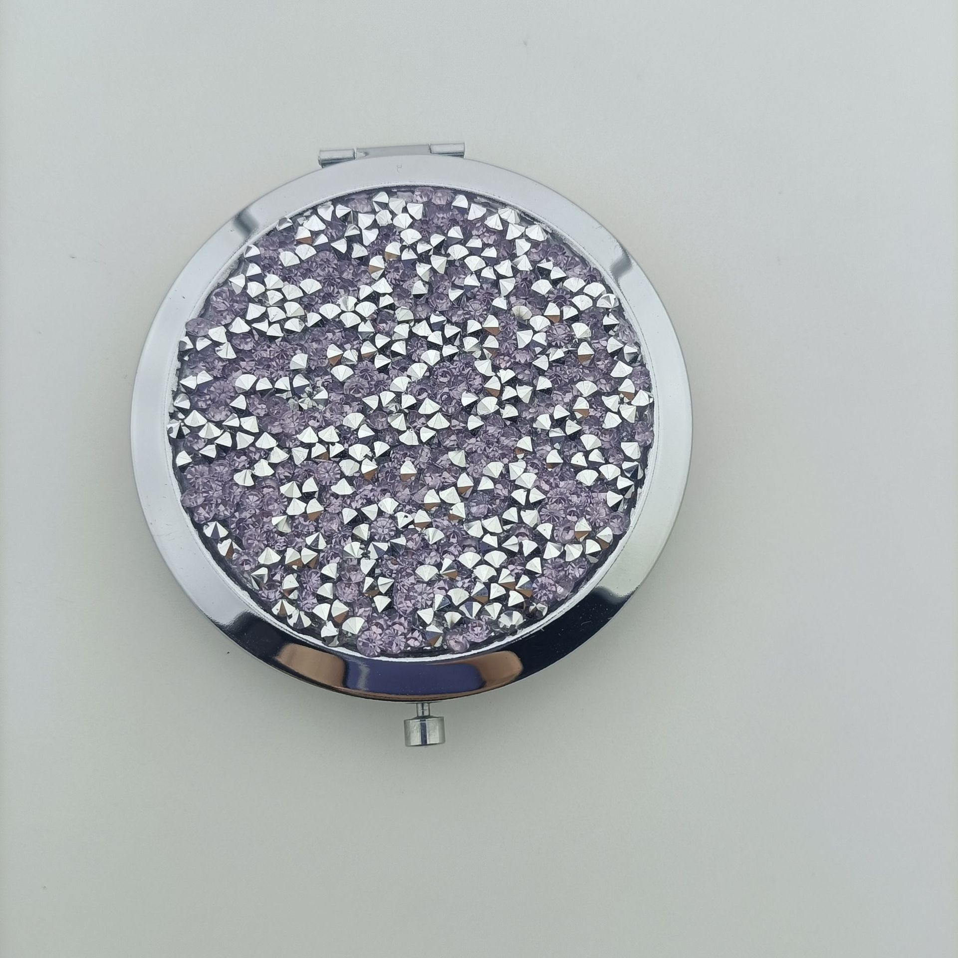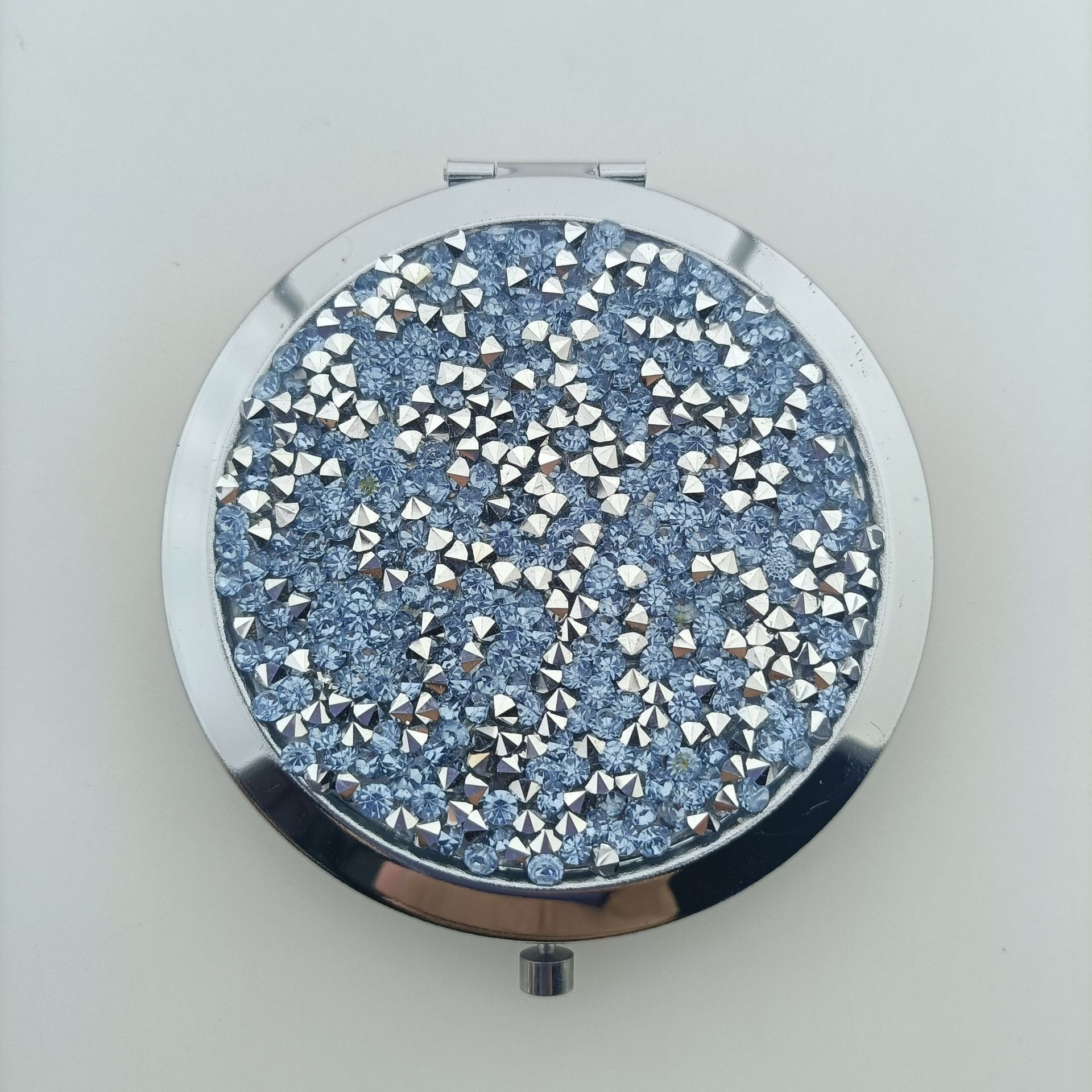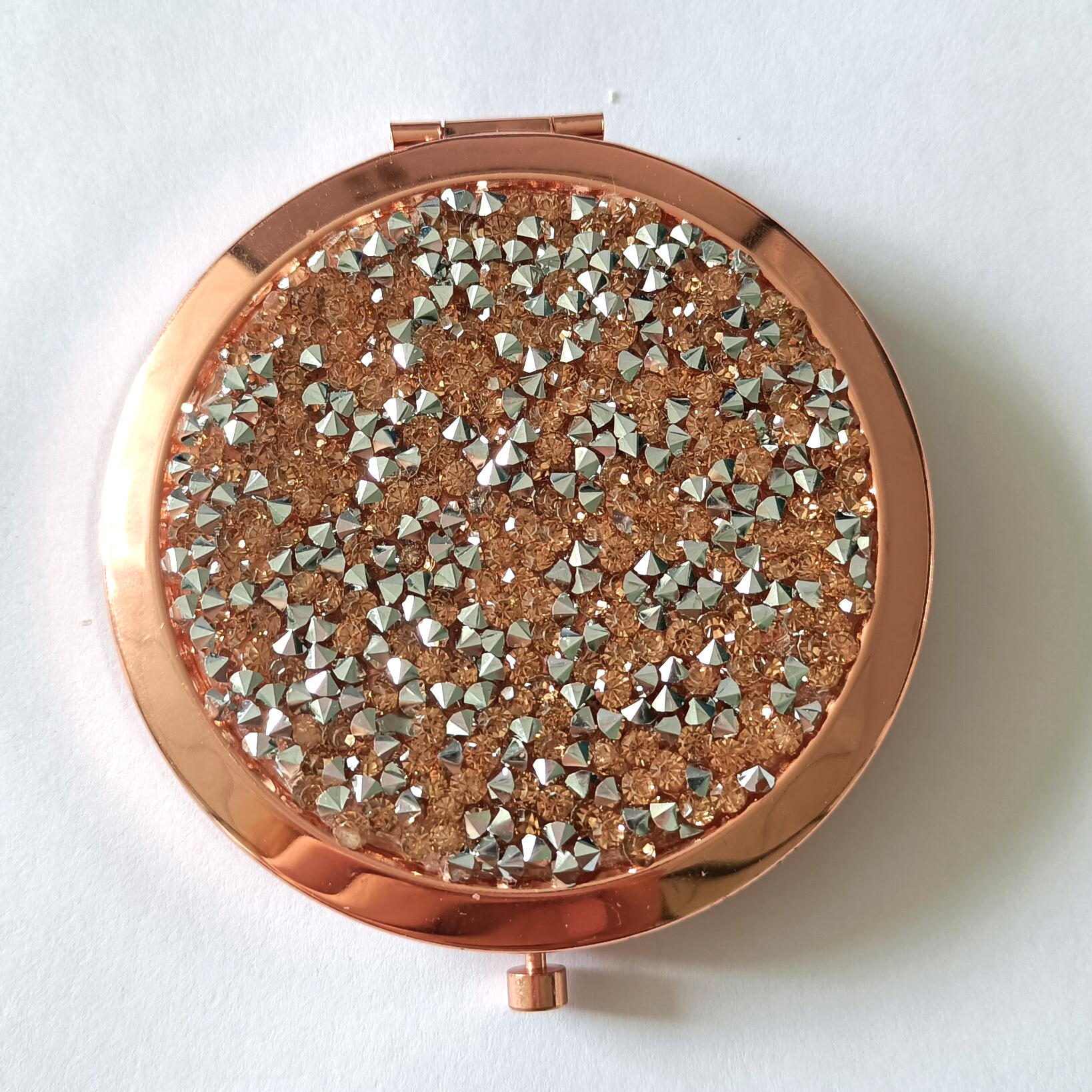 水晶贴钻圆形双面镜便携式迷你口袋镜70按扣金色玫瑰金银色小镜子