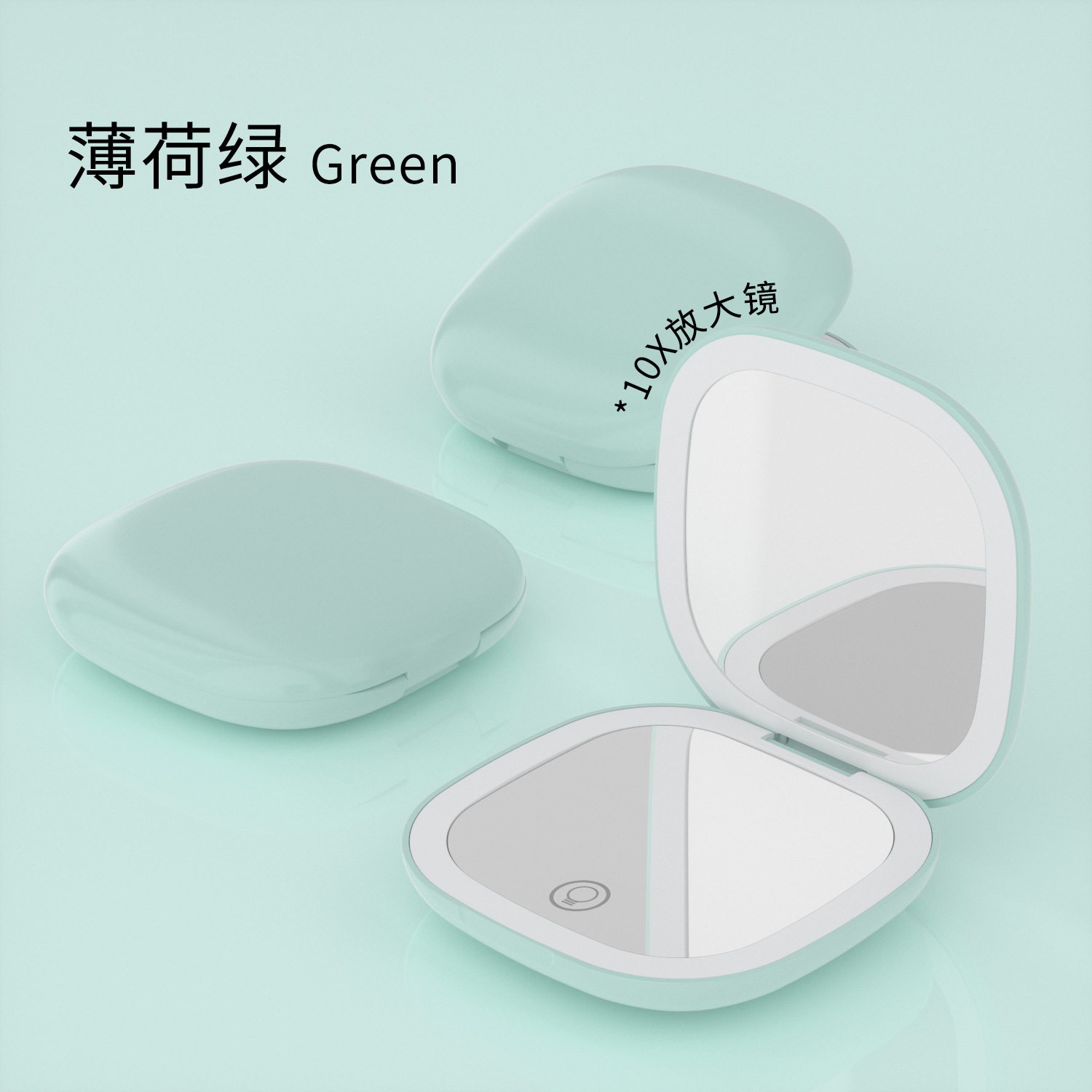 便携随身化妆镜补光折叠高清led美妆镜5倍三色灯调节手持补妆镜子