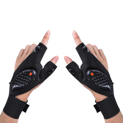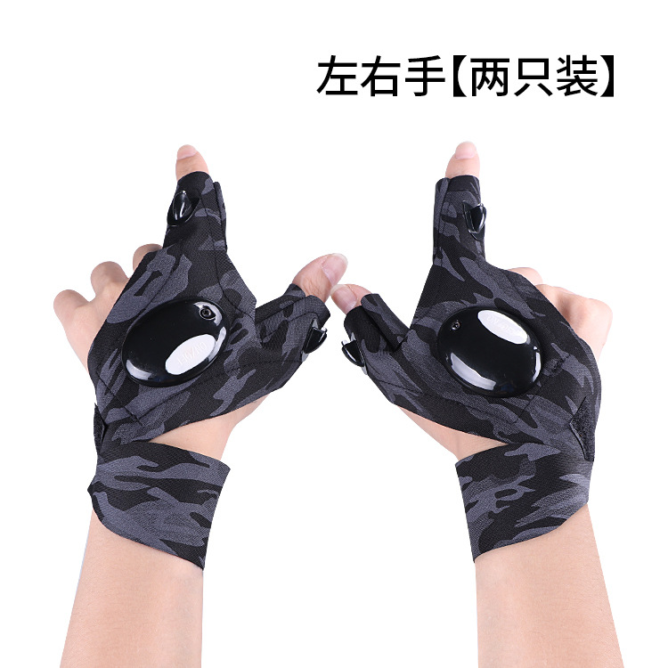 LED手电筒发光钓鱼手套 透气户外运动照明USB充电手指灯手套厂家