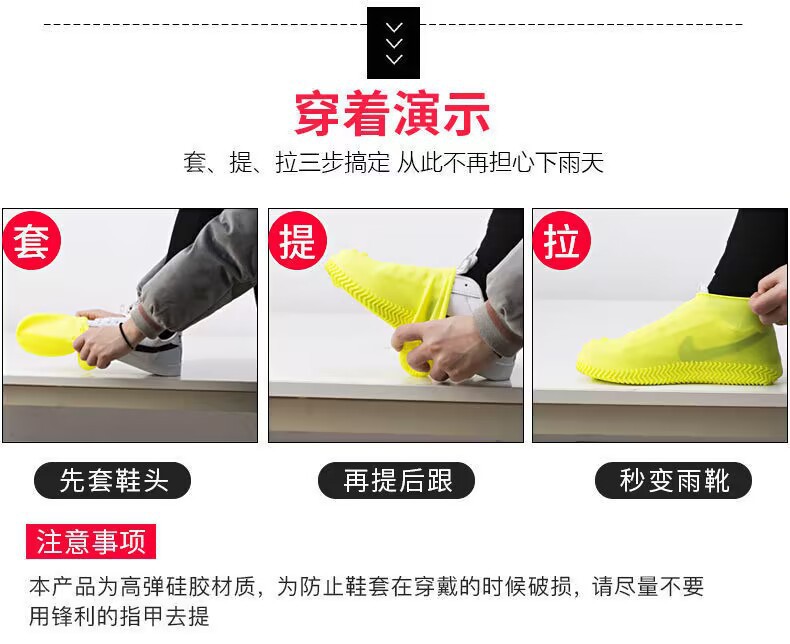 男女通用防水鞋套耐磨加厚防雨鞋套户外旅行便携硅胶鞋套厂家批发