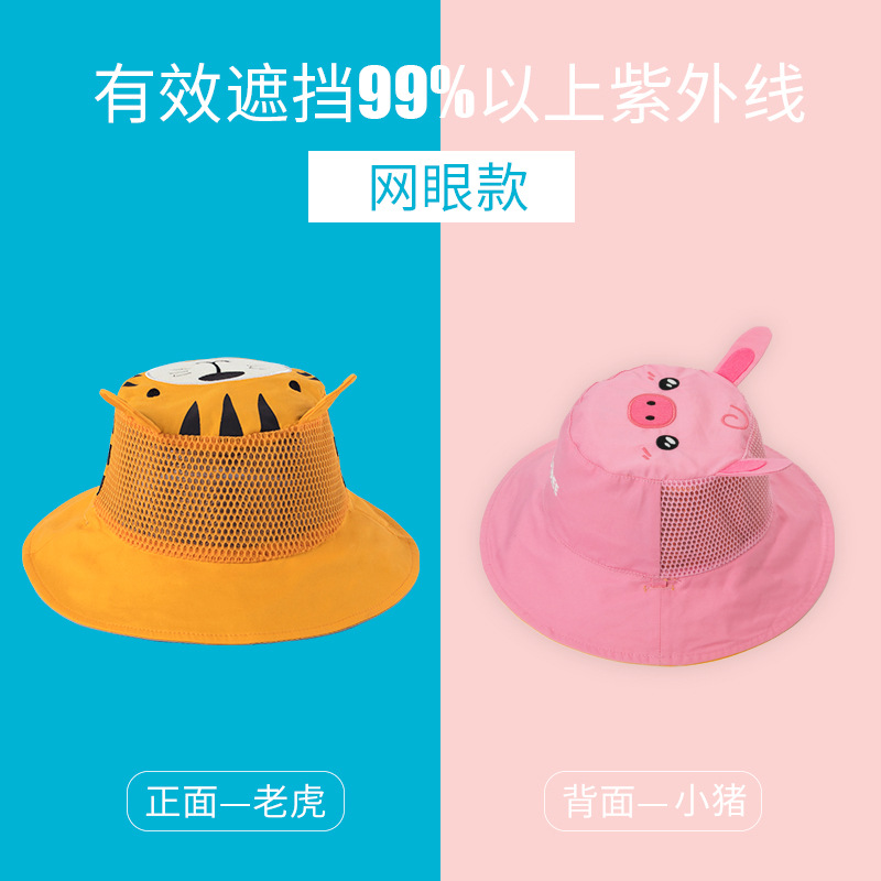 宝宝帽子春秋男童女童薄款可爱超萌太阳儿童防晒帽渔夫遮阳小恐龙