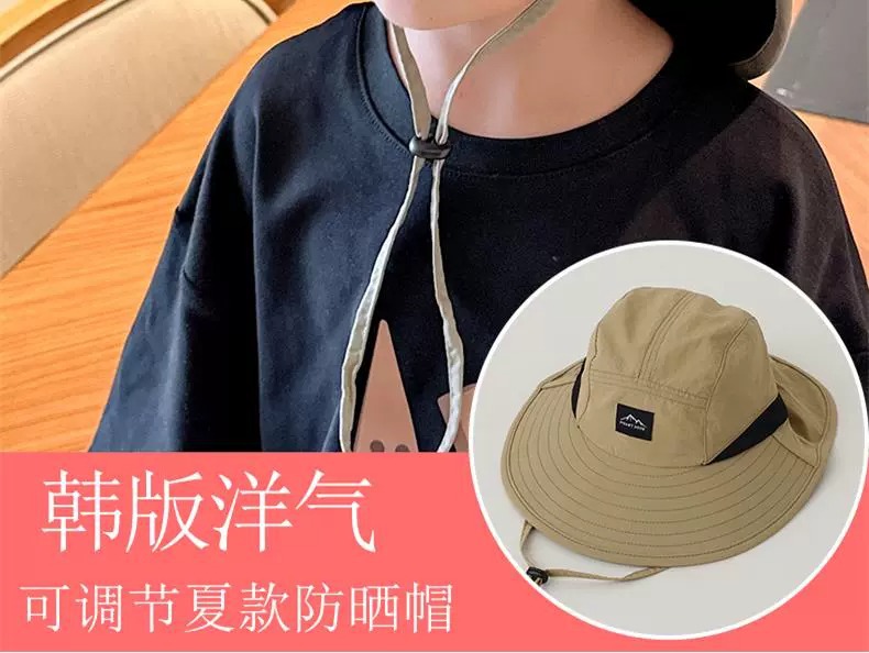 儿童帽子夏季大帽檐夏款防晒帽亲子太阳帽男童遮阳帽男孩渔夫帽
