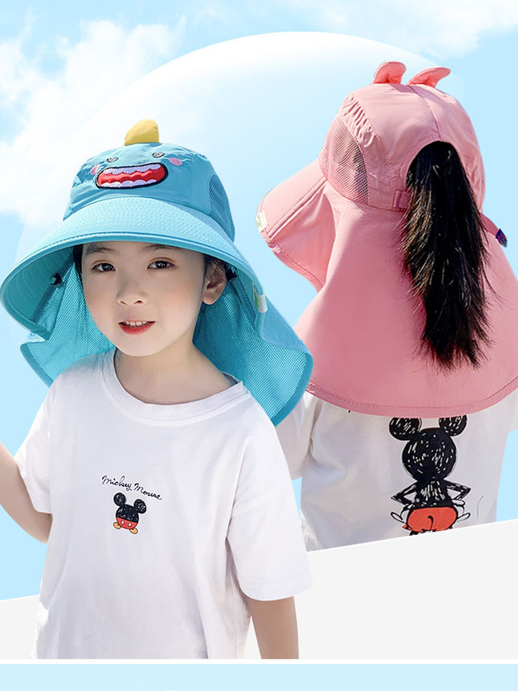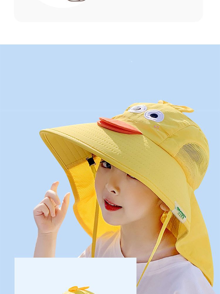 儿童防晒遮阳帽夏季防紫外线透气可爱小黄鸭大帽檐恐龙沙滩渔夫帽