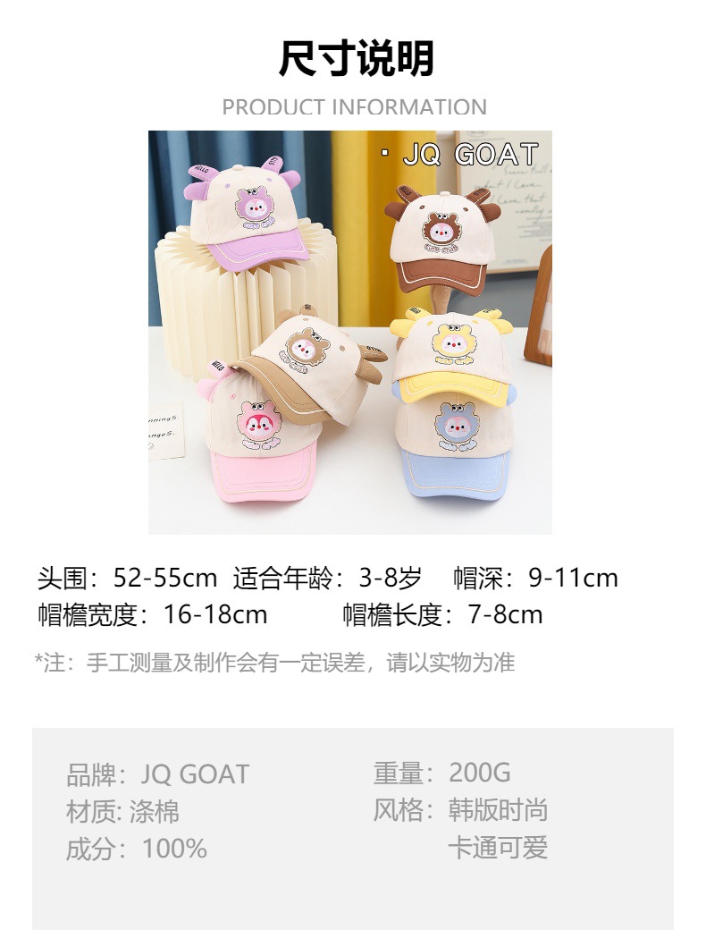 JQ GOAT儿童帽子春秋卡通棒球帽龙年限定宝宝时尚鸭舌帽外贸批发