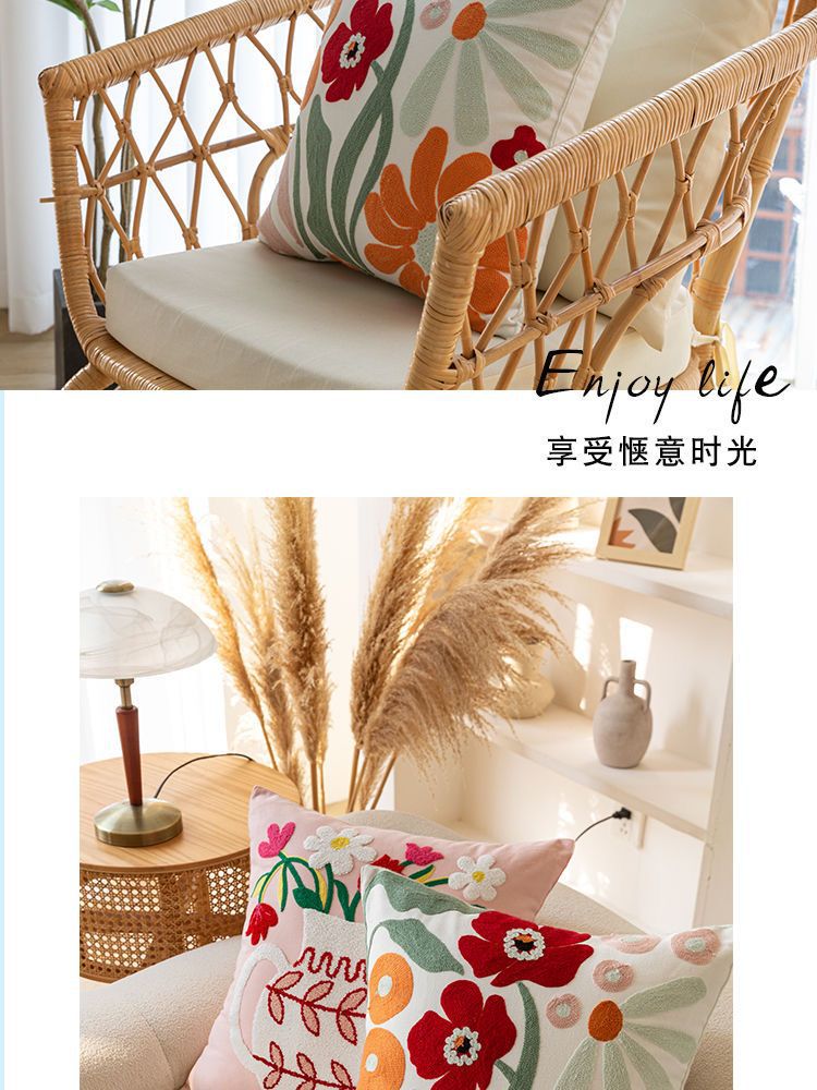 毛巾绣抱枕套田园风ins家居沙发抱枕床头靠垫办公室腰靠厂家批发