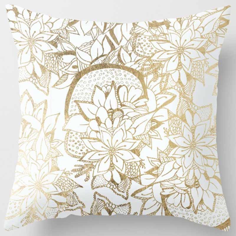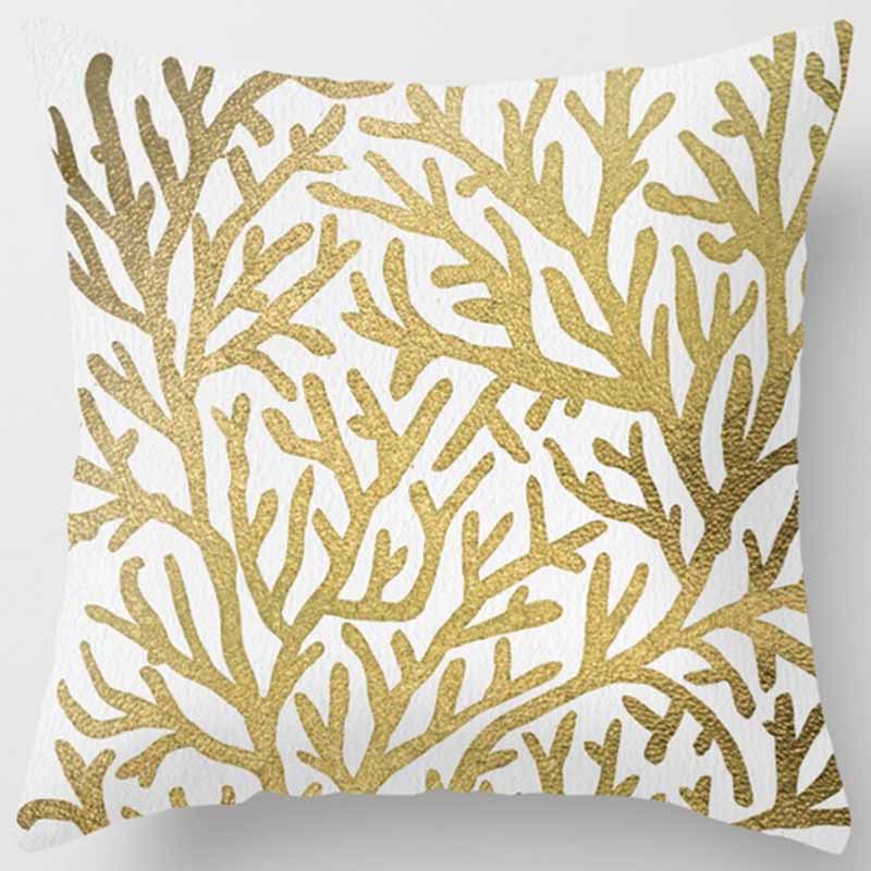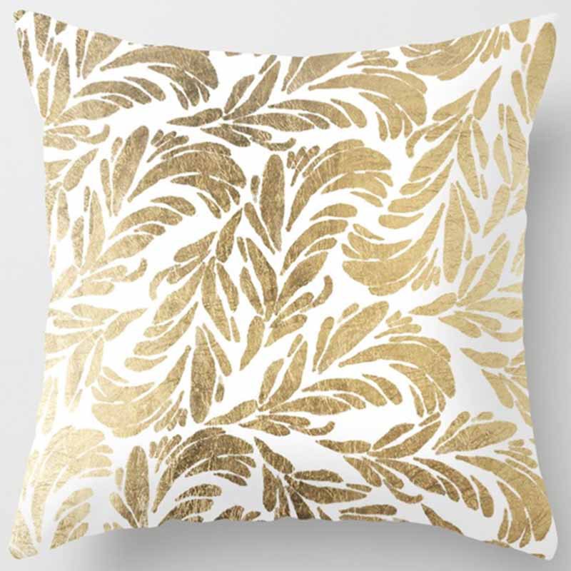 亚马逊爆款家居ins北欧风 金色叶子抱枕桃皮绒抱枕套靠枕靠垫腰靠
