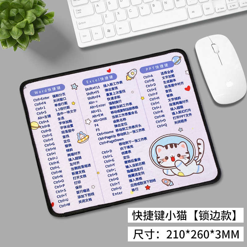 快捷键锁边鼠标垫小号男女生复古风可爱办公家用电脑游戏动漫励志