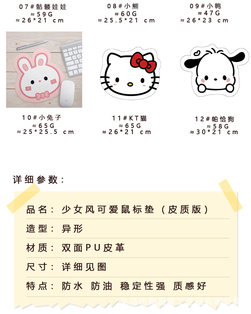 卡通创意皮革鼠标垫少女可爱小号垫防滑个性电脑桌垫办公用品批发