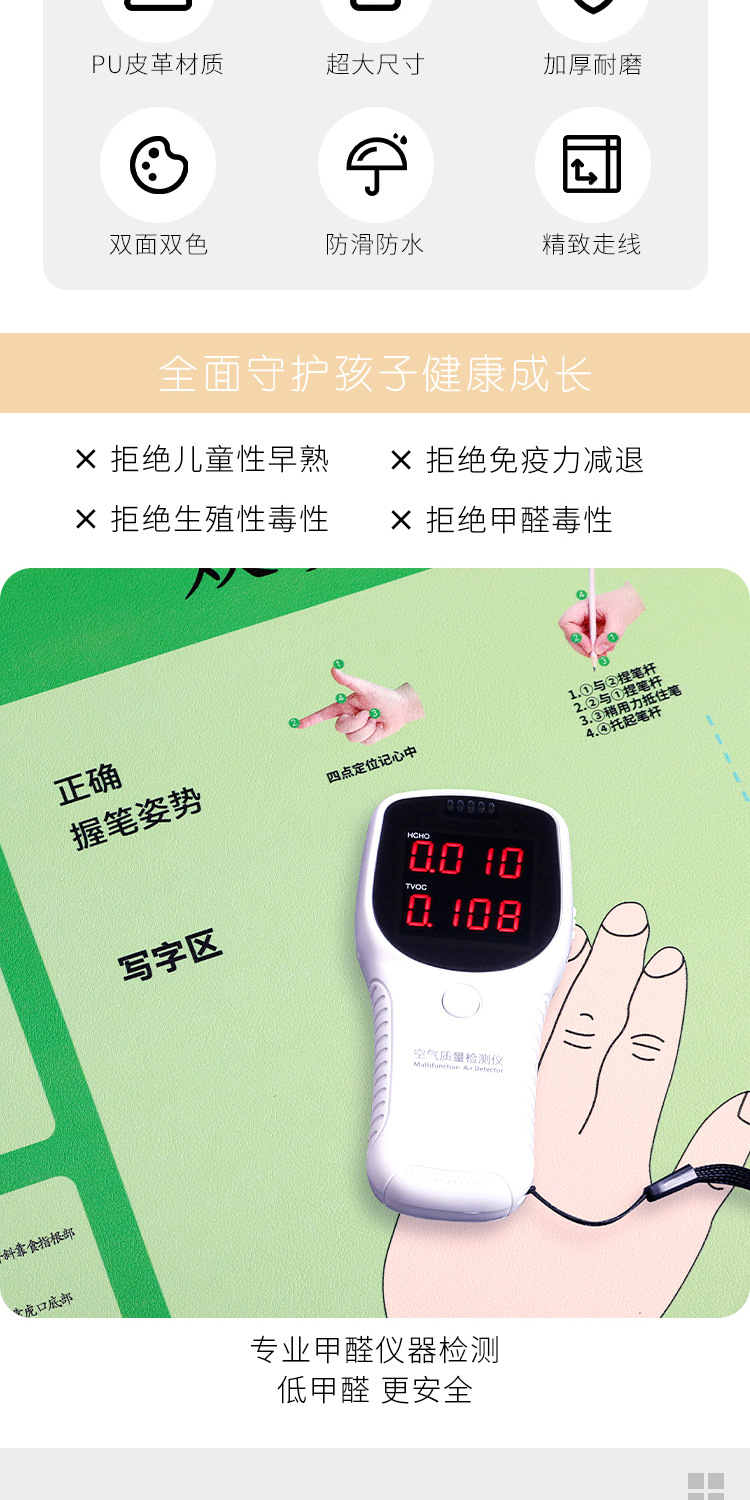 双色双姿规范书写提醒垫鼠标垫学生写字垫办公皮革桌垫防水防滑