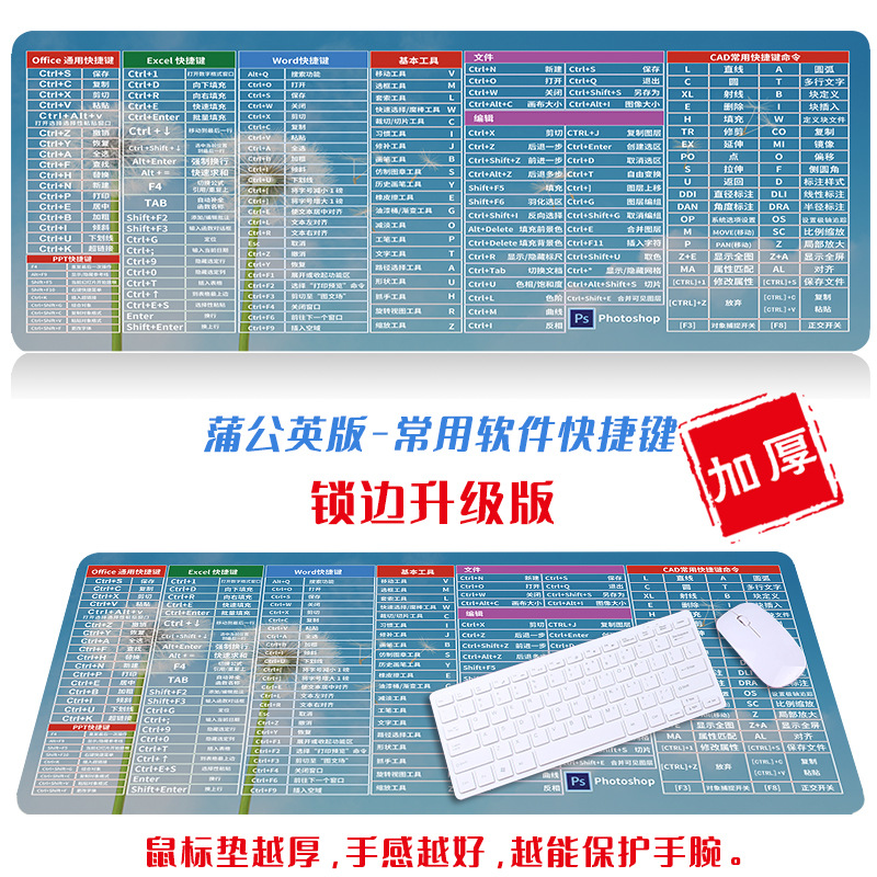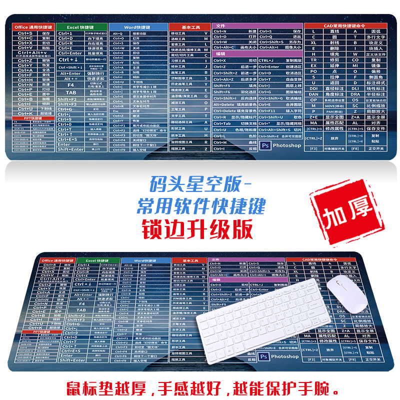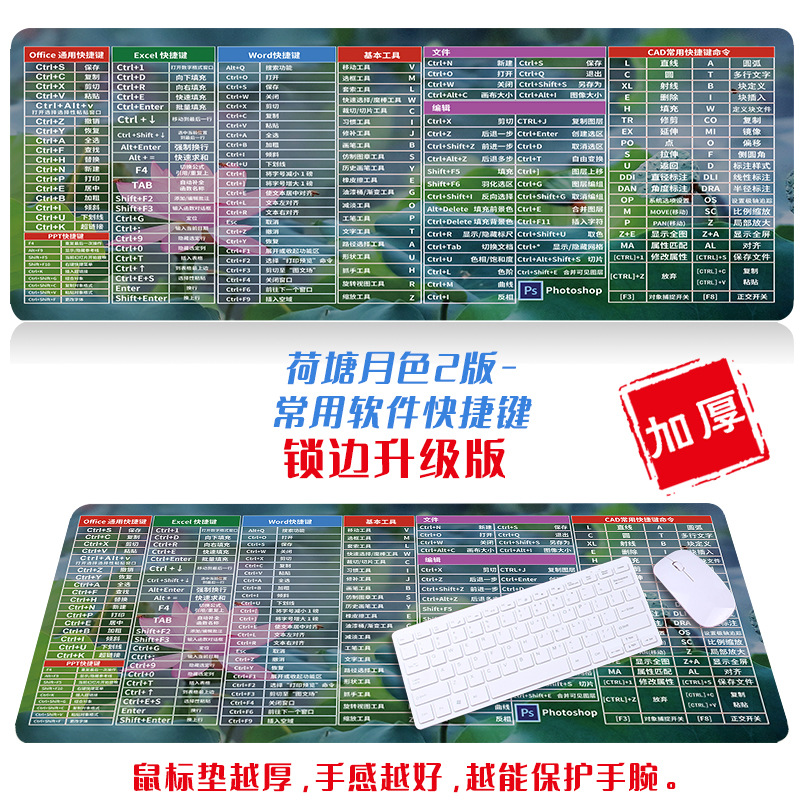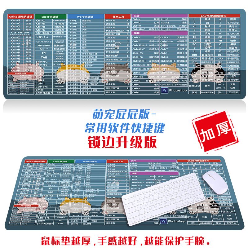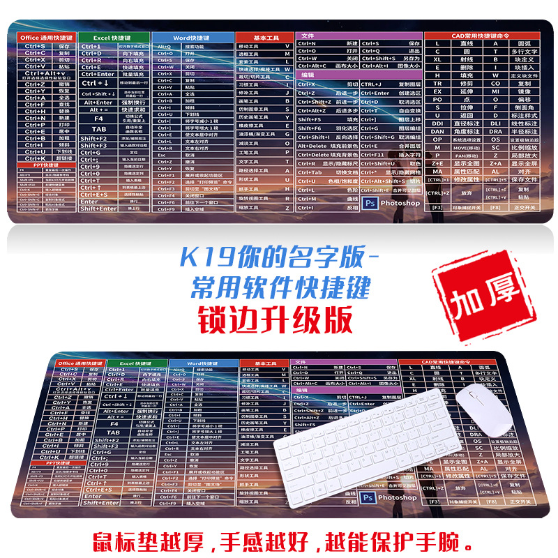 【快捷键】超大号常用软件快捷键电脑垫可爱温馨自然ins风鼠标垫