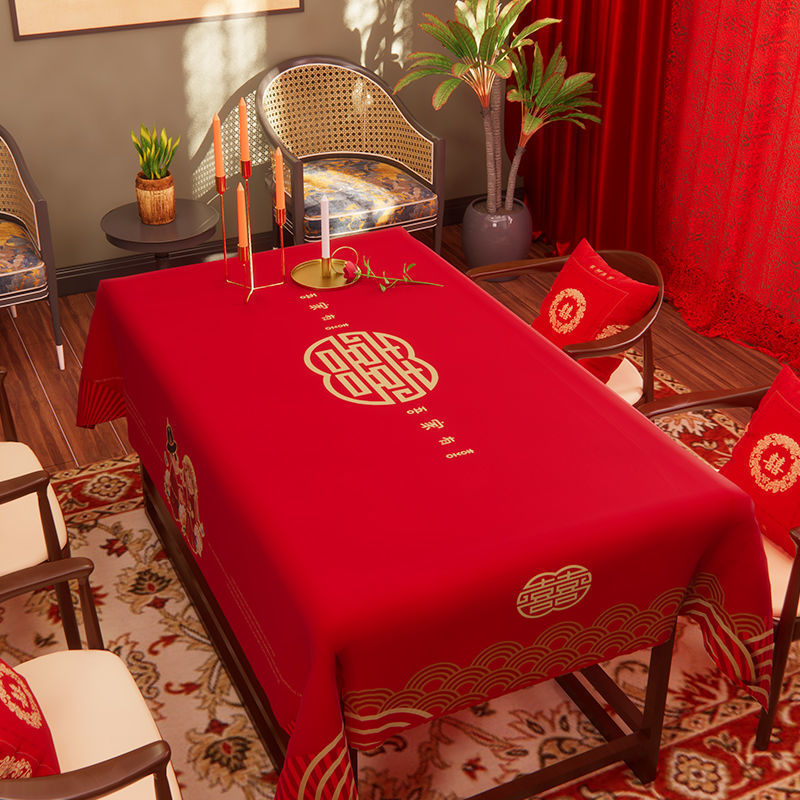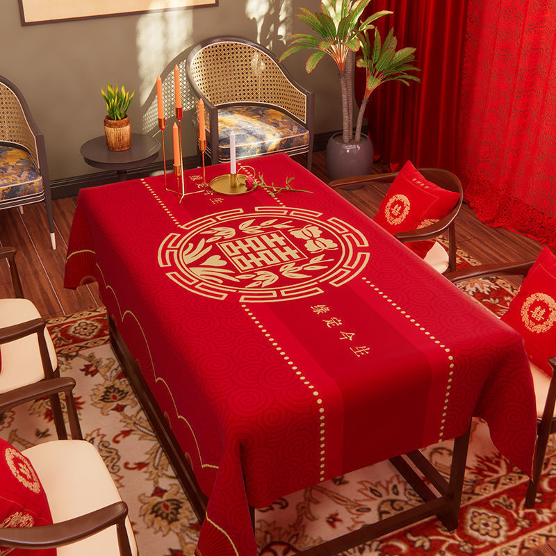 桌布结婚新中式喜字喜事茶几台布防水喜庆餐桌布盖布亚马逊跨境