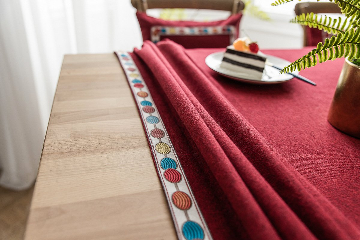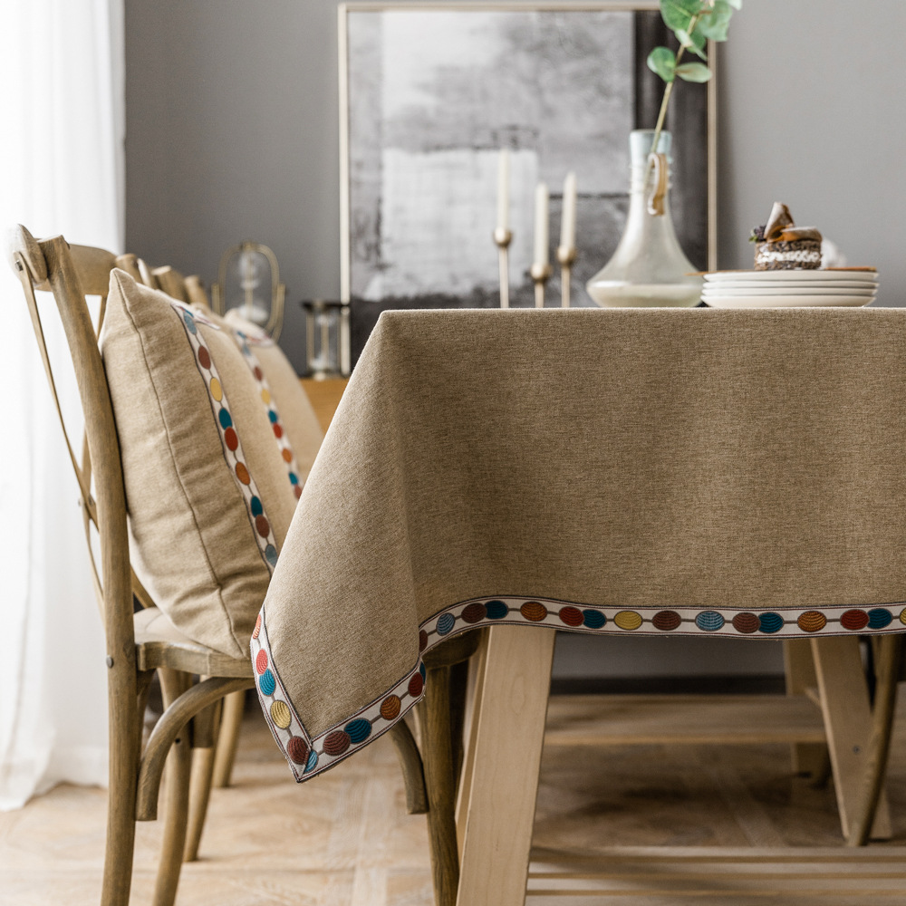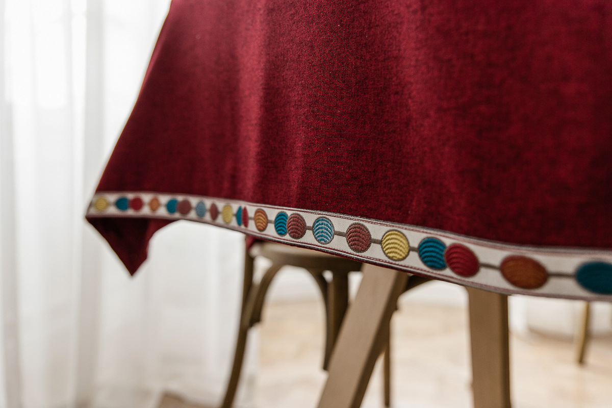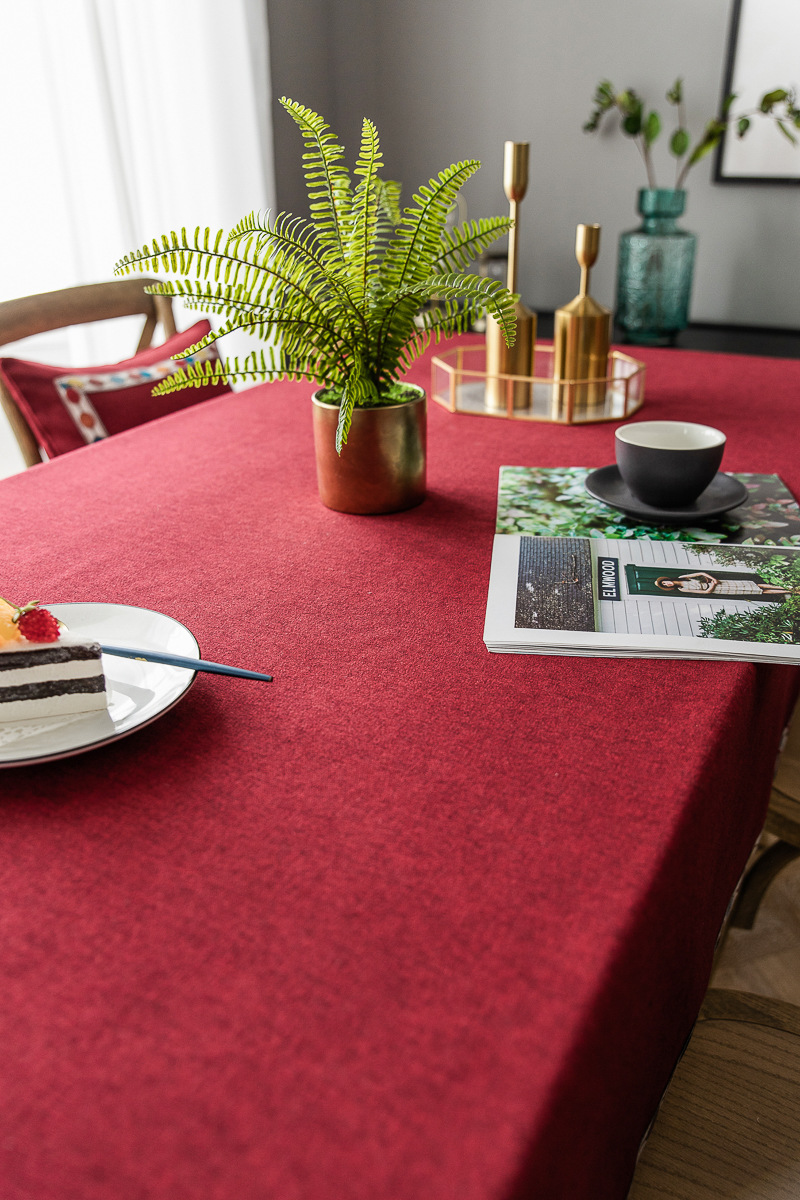 纯色北欧式防水桌布台布提花红色仿棉麻圣诞桌布亚马逊