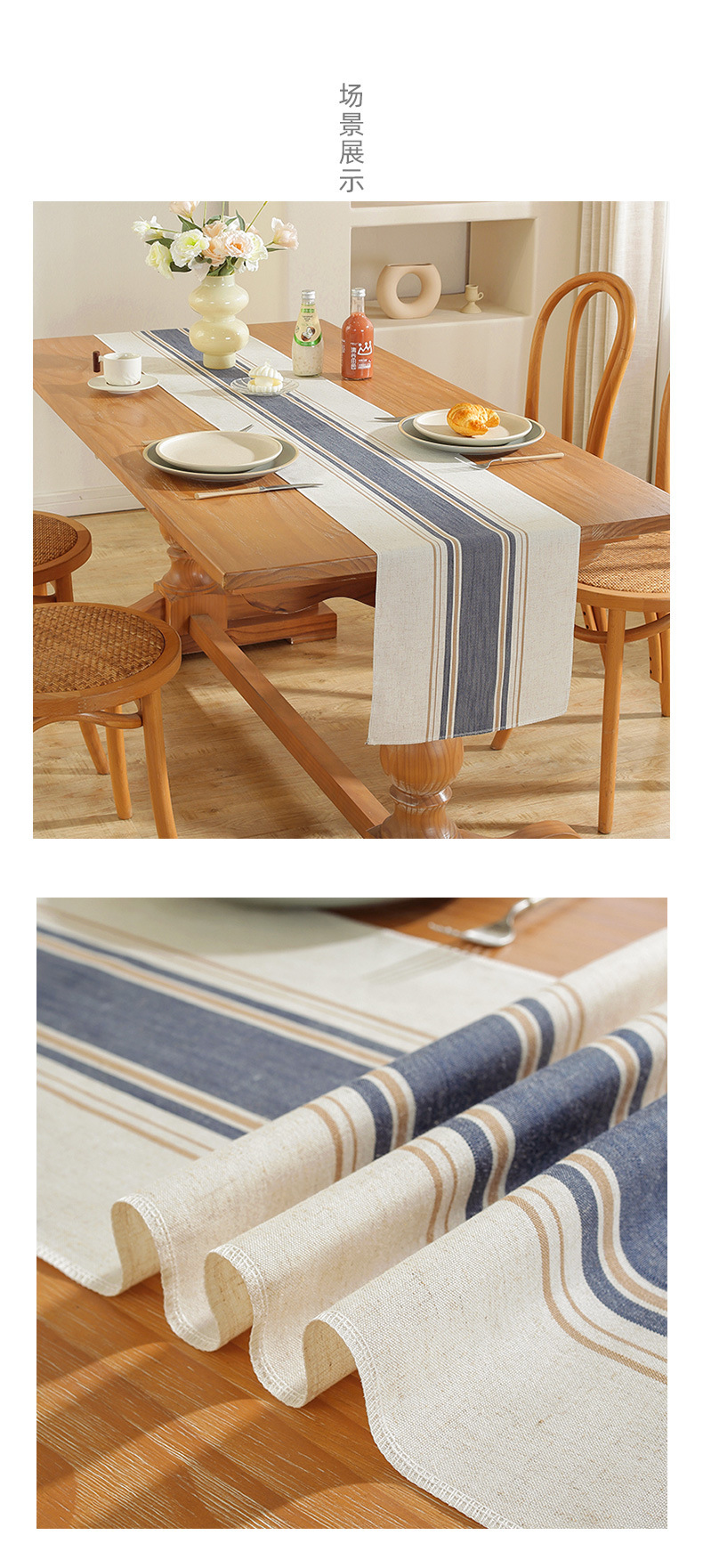 新款亚马逊条纹桌旗餐桌桌布装饰茶几旗电视柜盖巾长条桌布现货