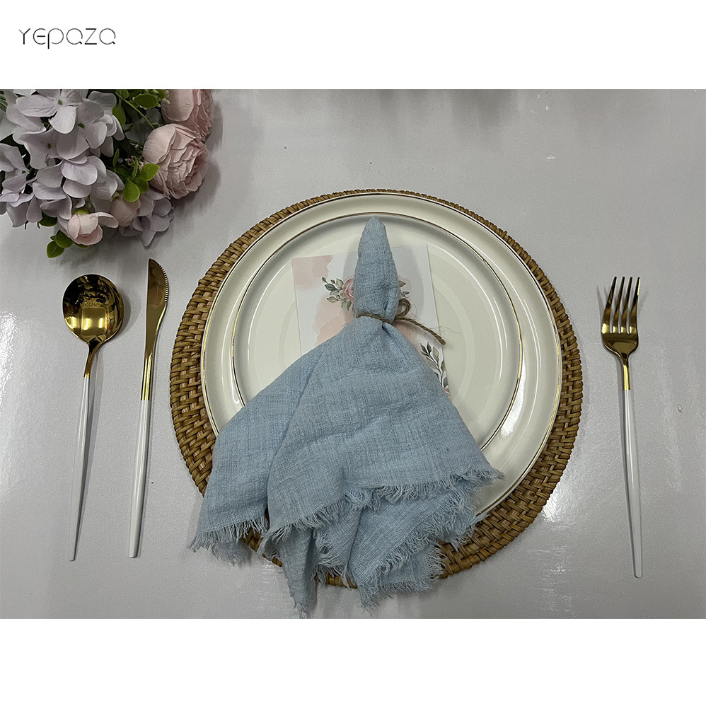 跨境专供亚马逊速卖通厂家直发cheesecloth全棉毛边餐巾桌布桌旗