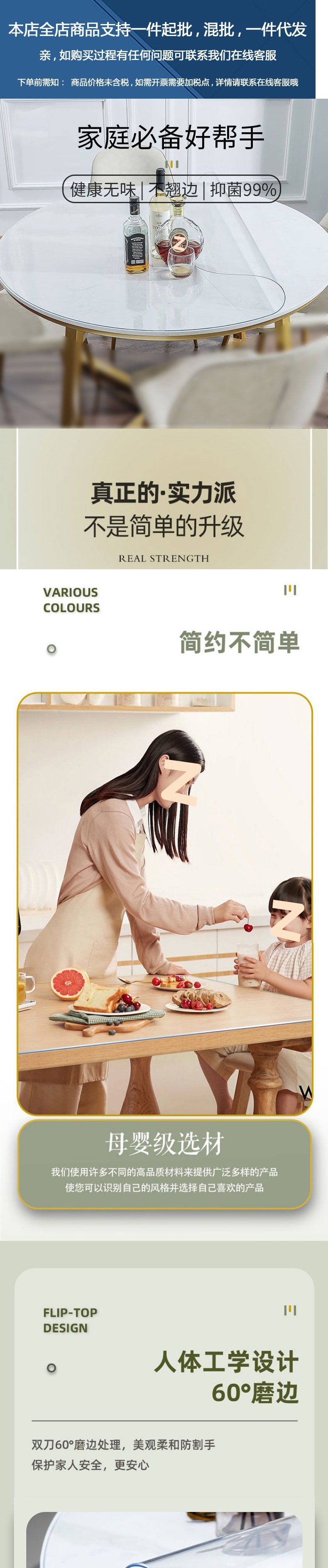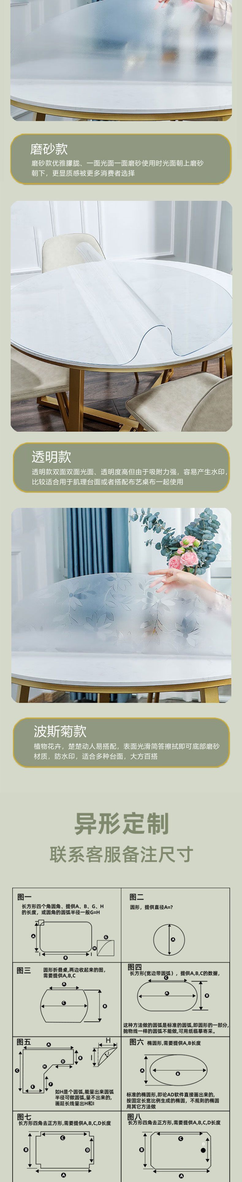 桌布圆形透明磨砂圆桌软玻璃免洗圆形塑料大圆桌台布亚马逊