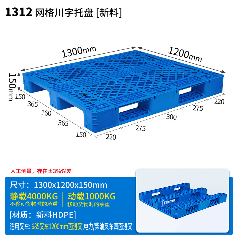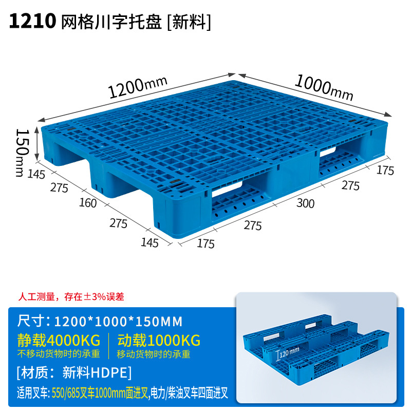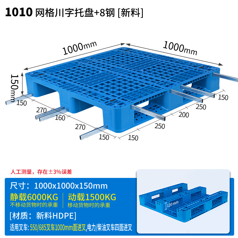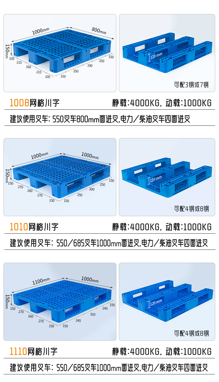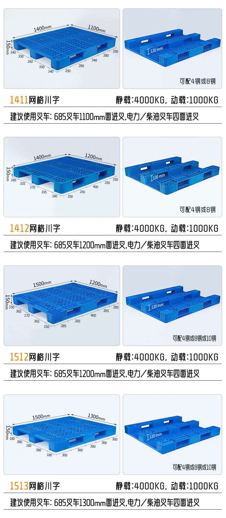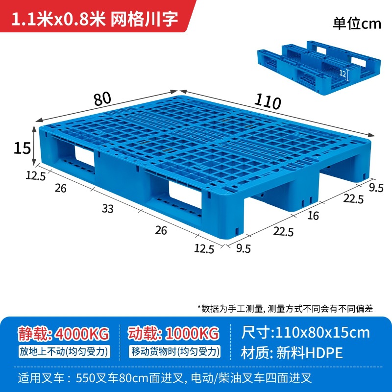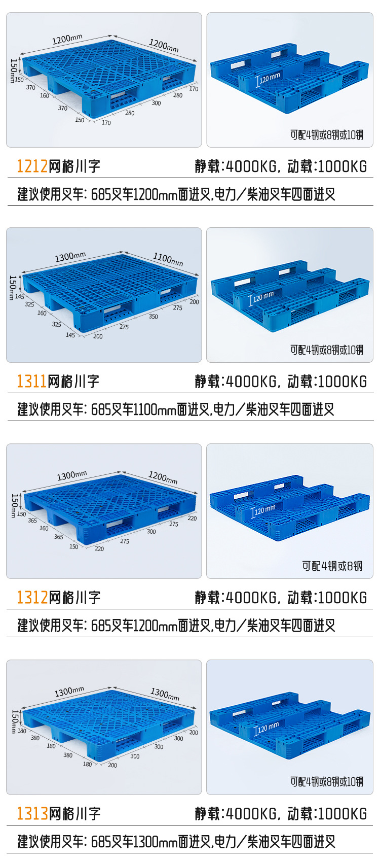 网格川字塑料叉车托盘 物流防潮垫板仓库货架栈板防潮板物流托盘