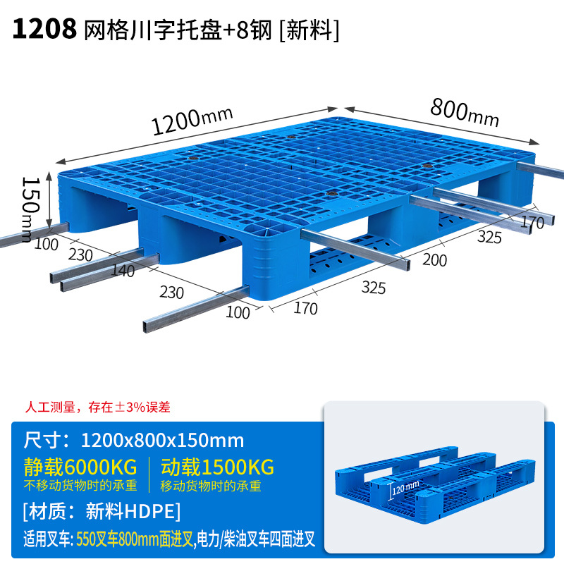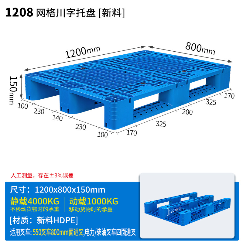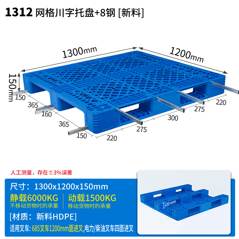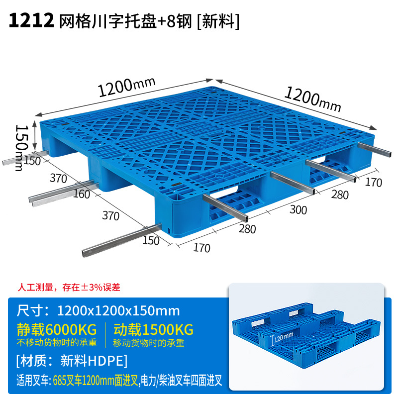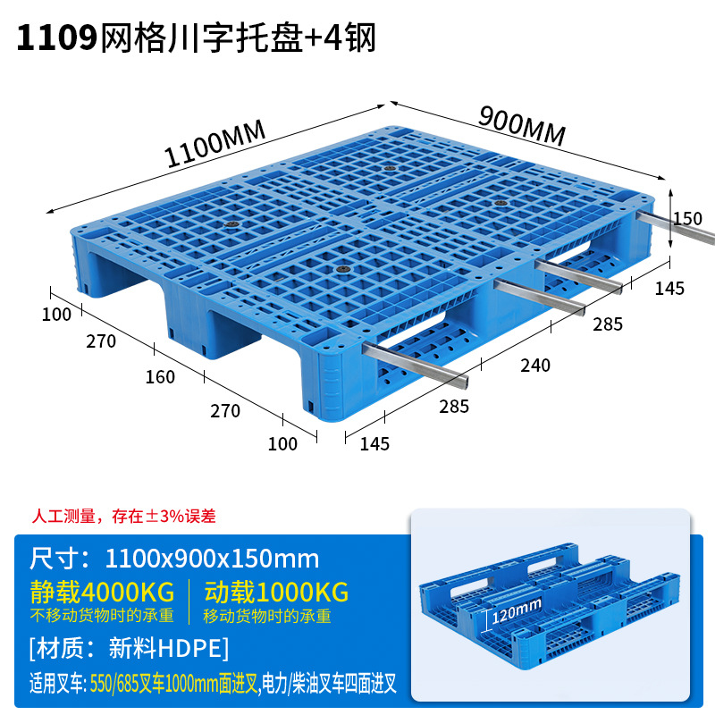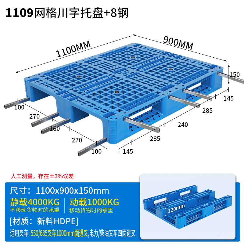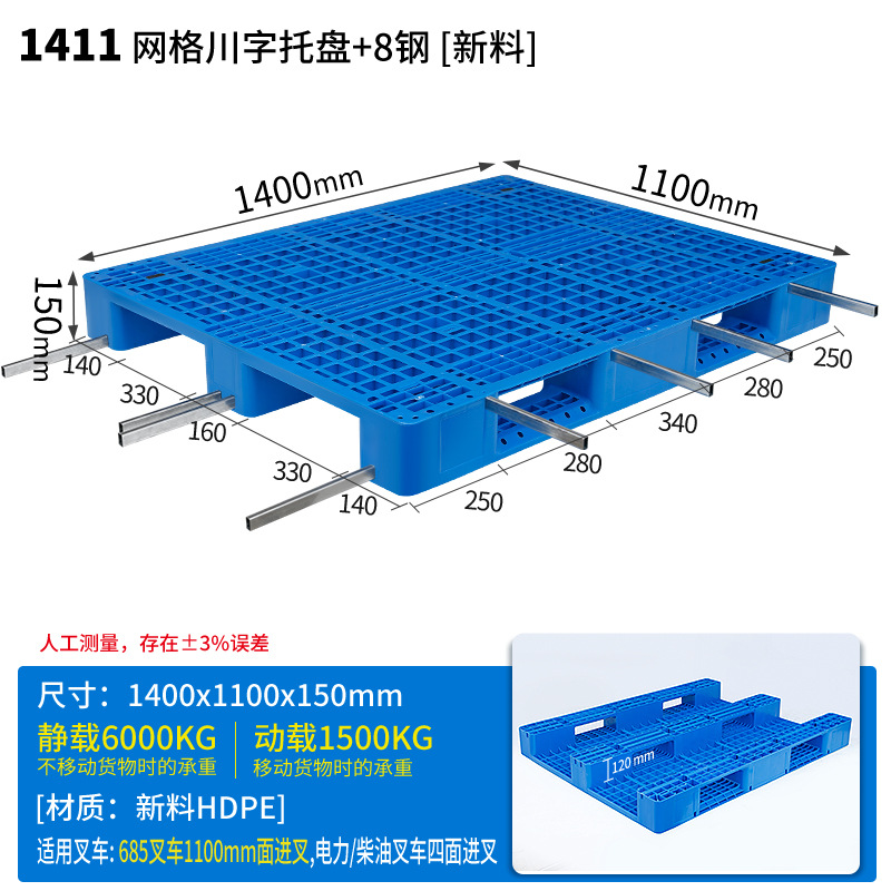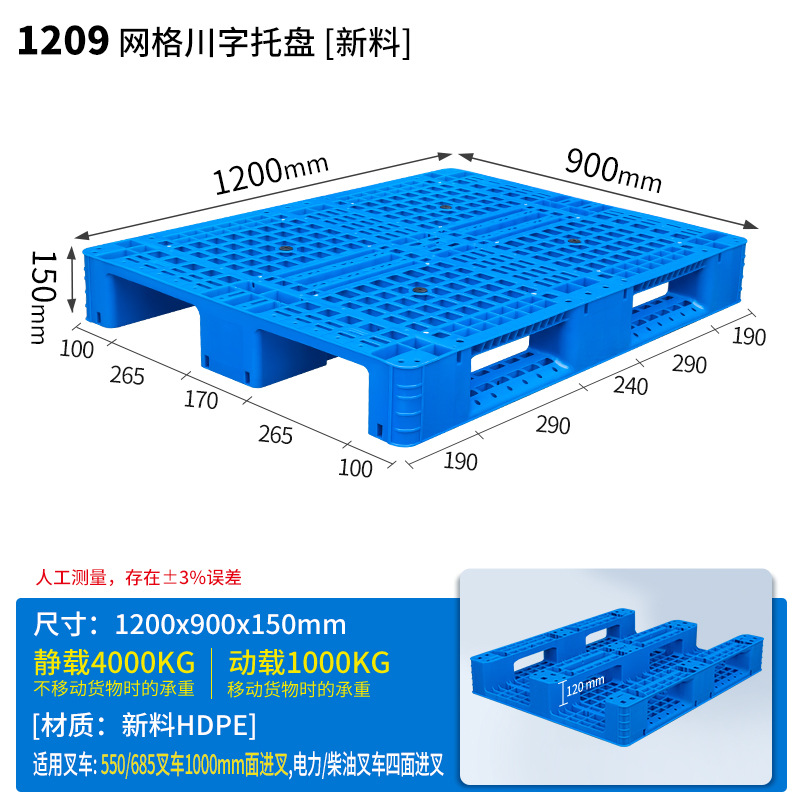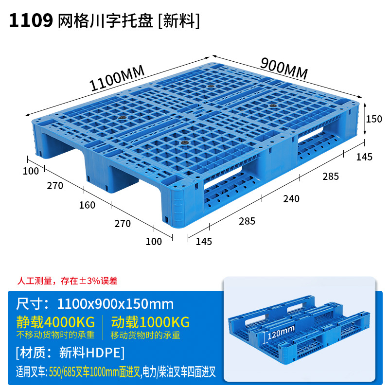网格川字塑料叉车托盘 物流防潮垫板仓库货架栈板防潮板物流托盘