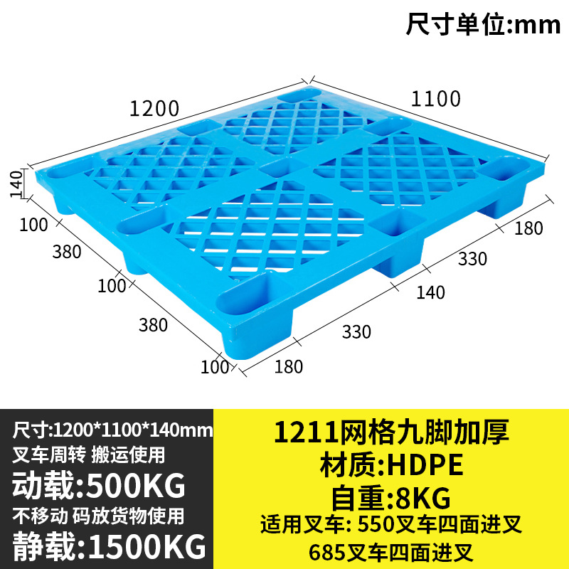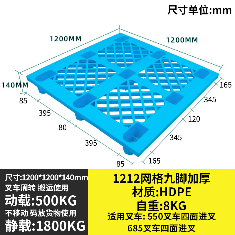 塑料托盘叉车物流专用托板网格九脚仓库防潮垫板栈板塑胶卡板厂家