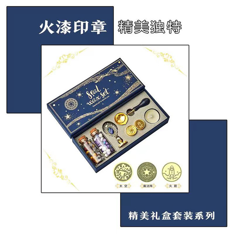火漆印章礼盒套装星空火漆蜡粒章头新手工具熔炉垫板信封封口蜡粒