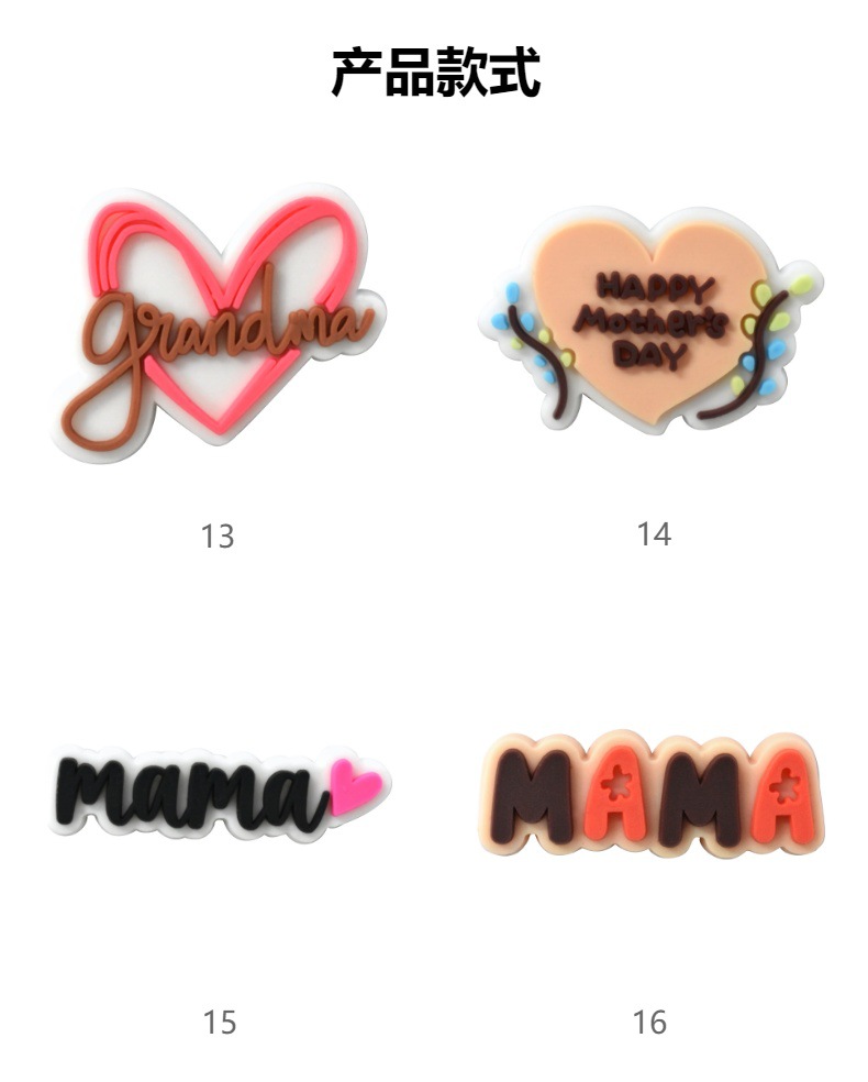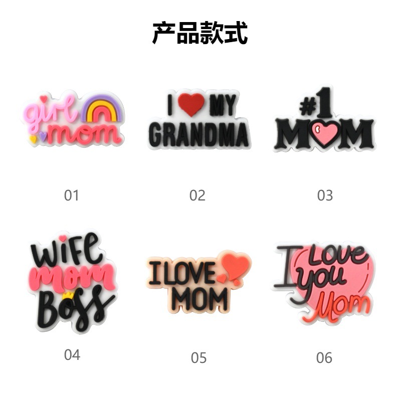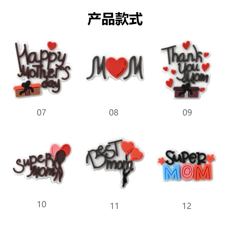 新款母亲节系列洞洞鞋鞋花pvc软胶鞋扣配饰diy鞋带装饰品现货批发