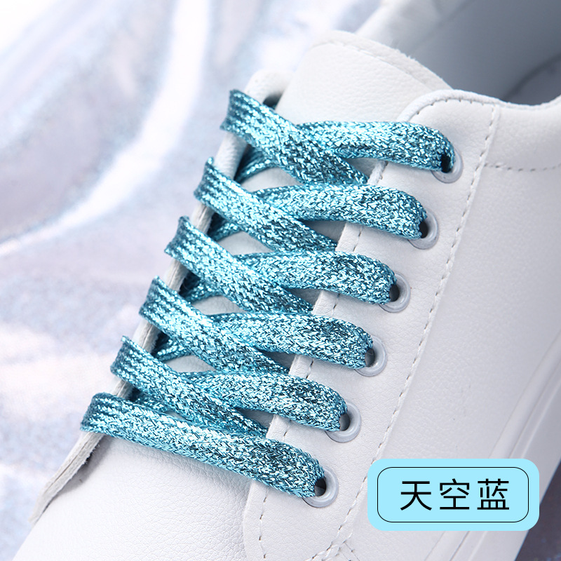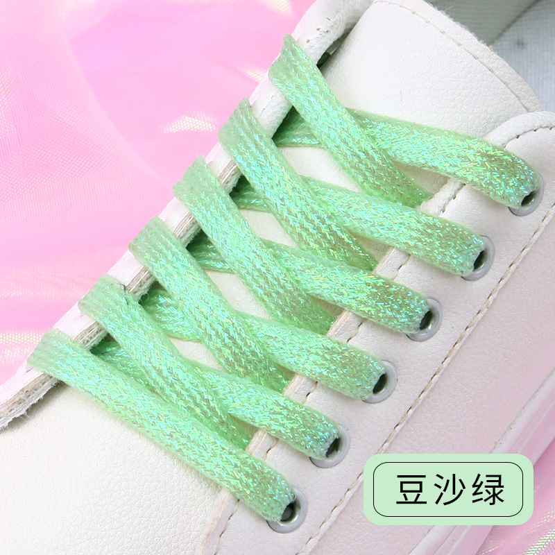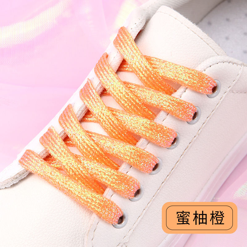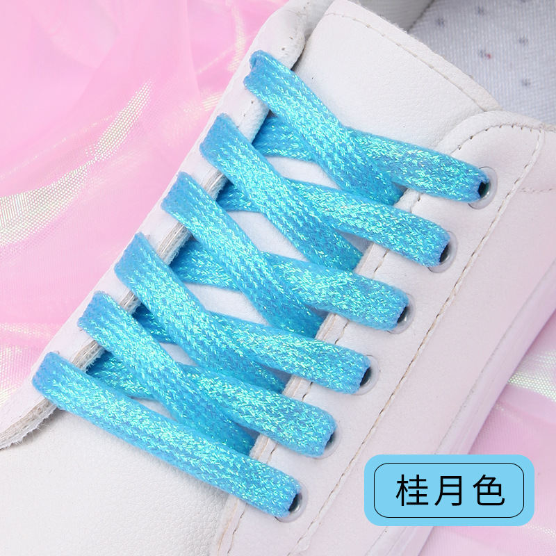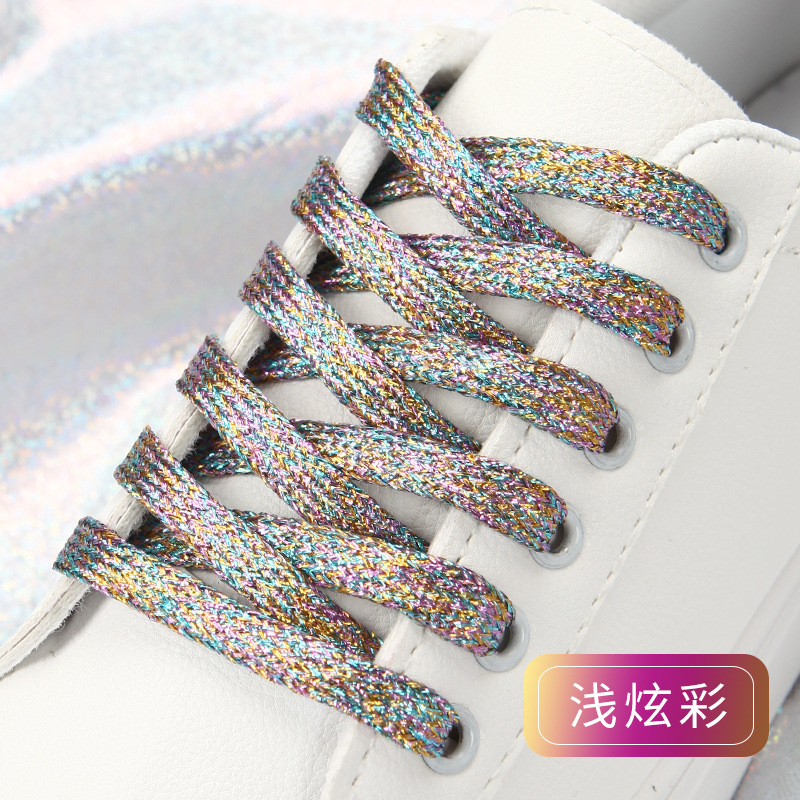现货批发珠光炫彩鞋带 金银葱闪光丝白色黑色彩虹色扁平双层跨境