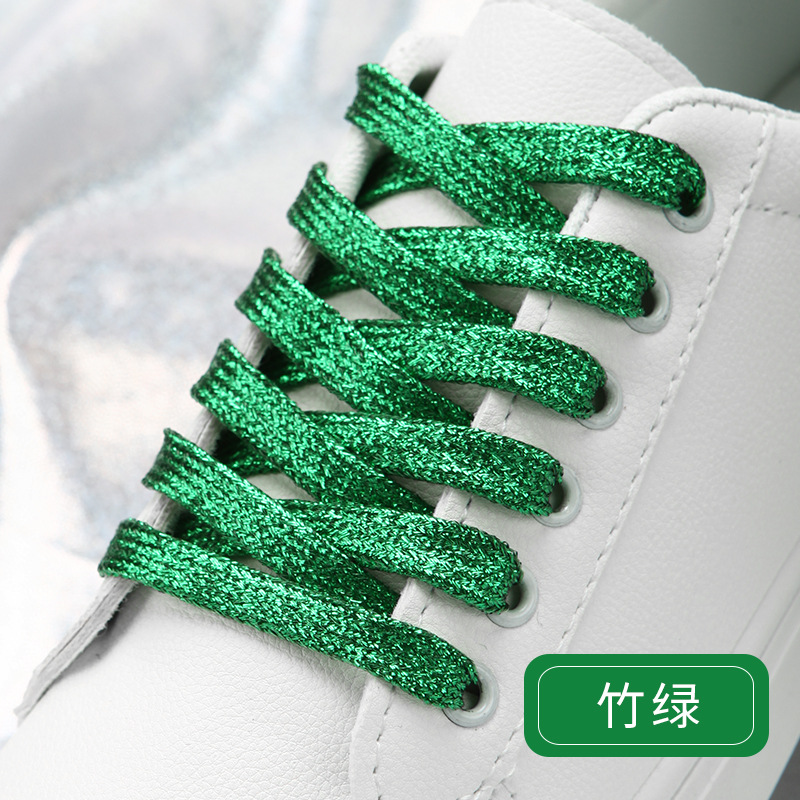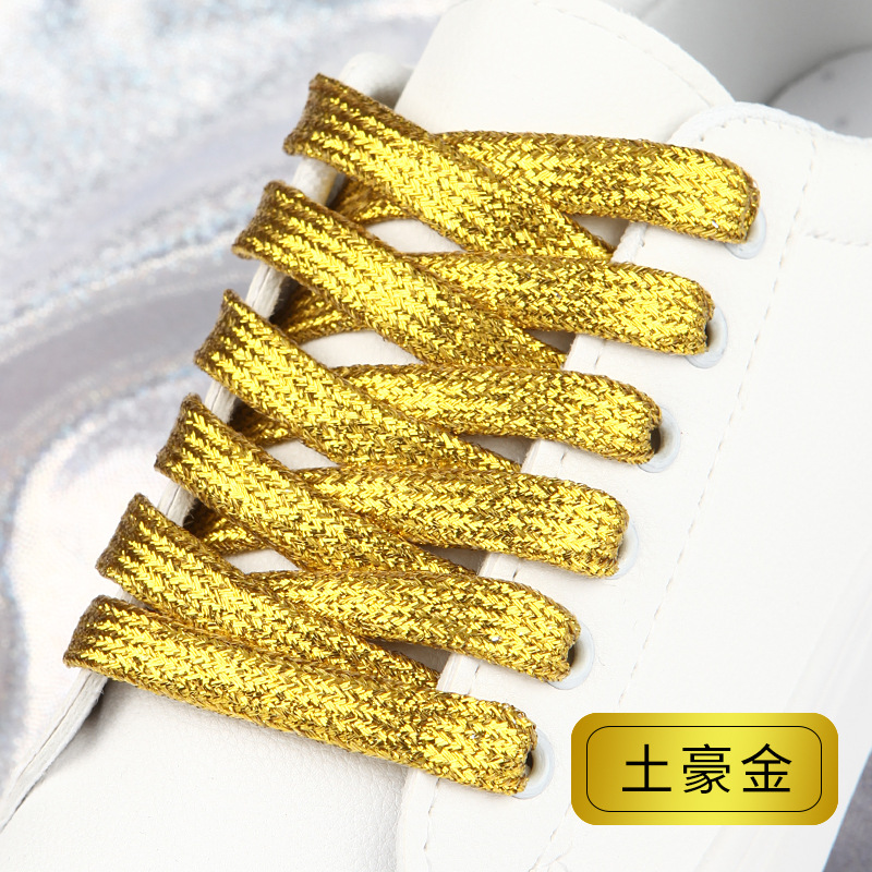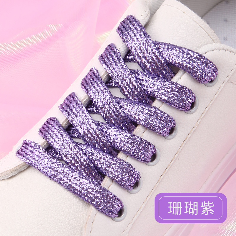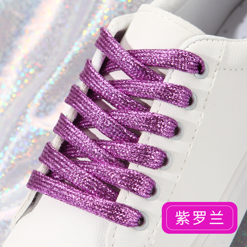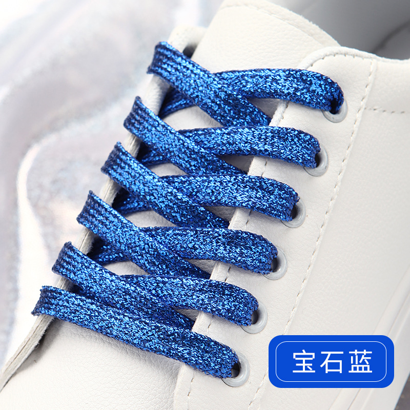 现货批发珠光炫彩鞋带 金银葱闪光丝白色黑色彩虹色扁平双层跨境