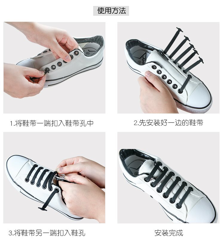 懒人鞋带免系男女儿童免绑松紧运动百搭白色黑色弹力扁硅胶鞋带扣