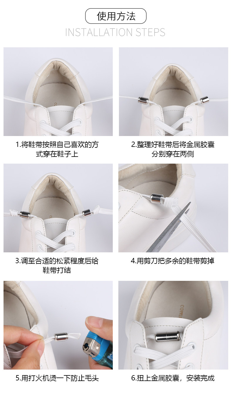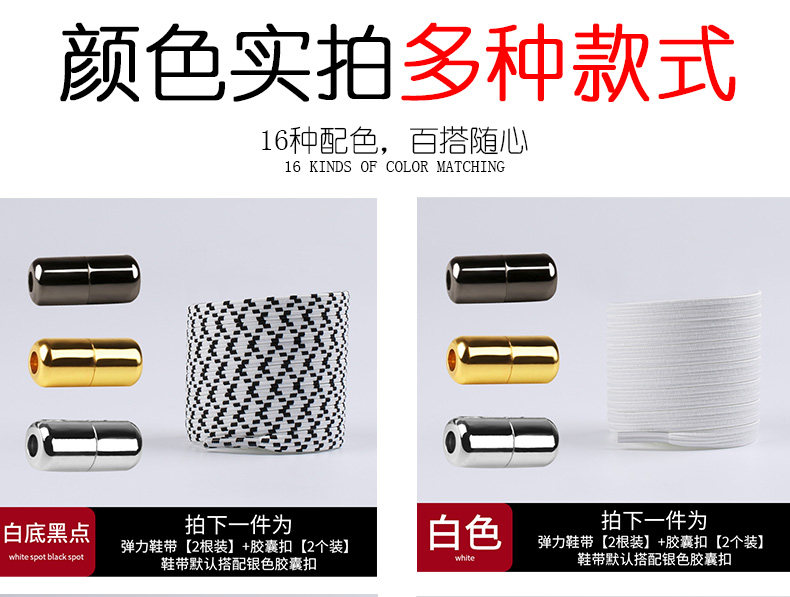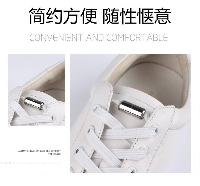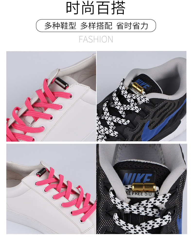 懒人鞋带绳金属松紧扣免绑免系成人男女儿童黑白彩色弹力扁平鞋带