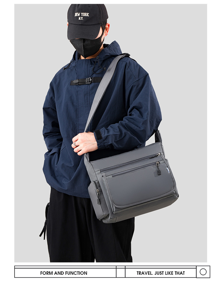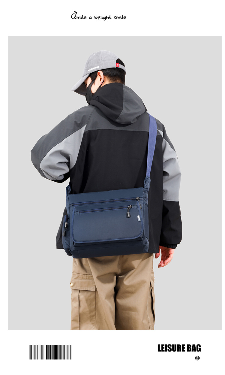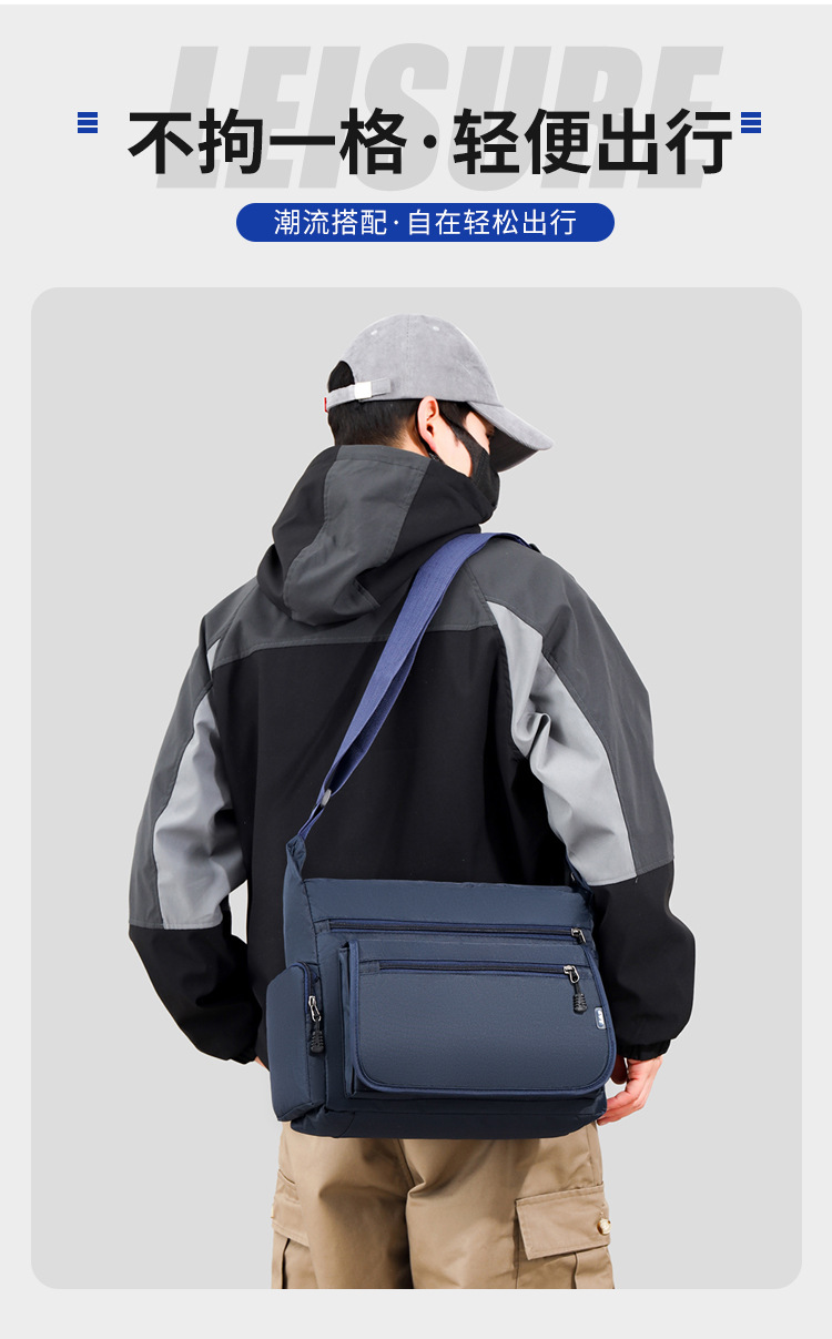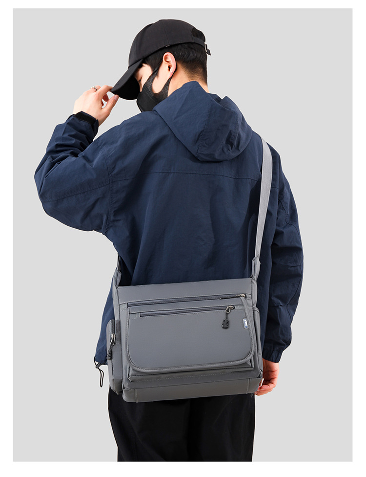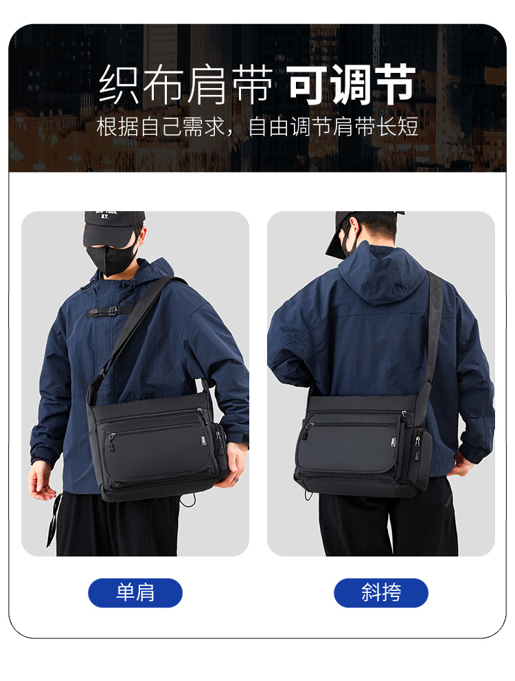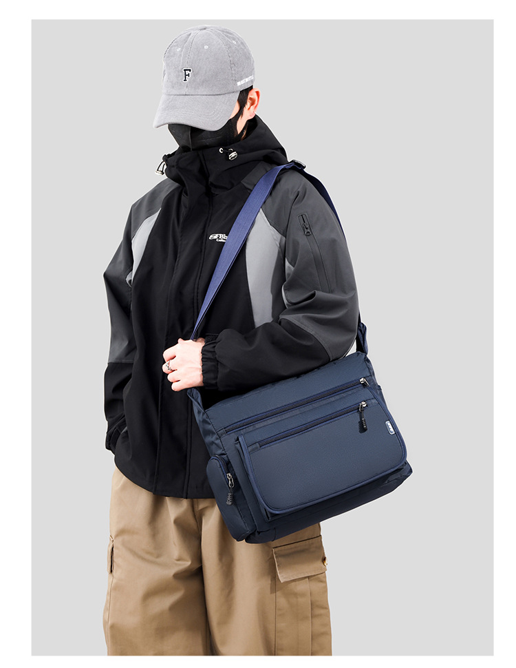 男包新款单肩包简约时尚休闲复古多层牛津布商务通勤斜挎包