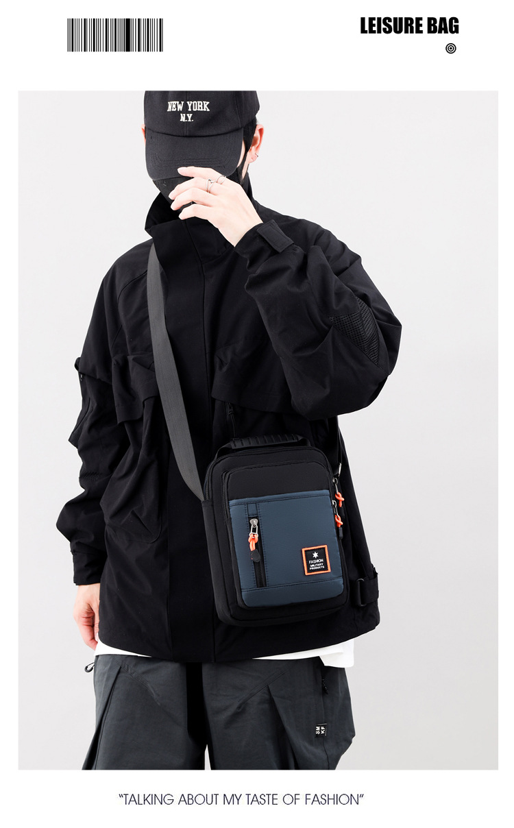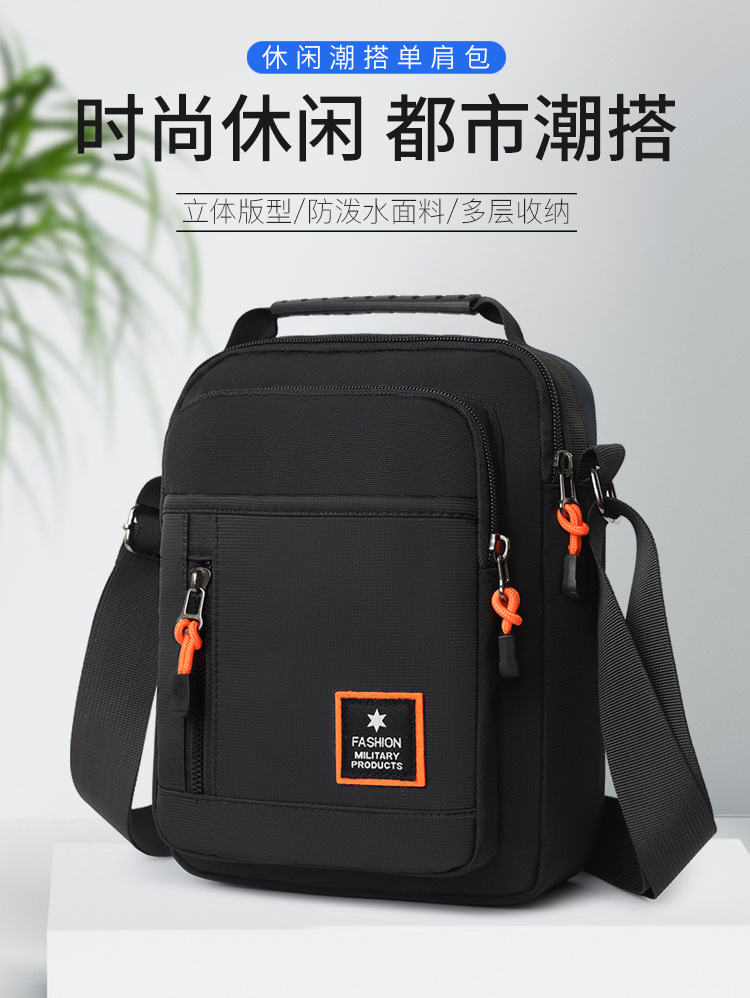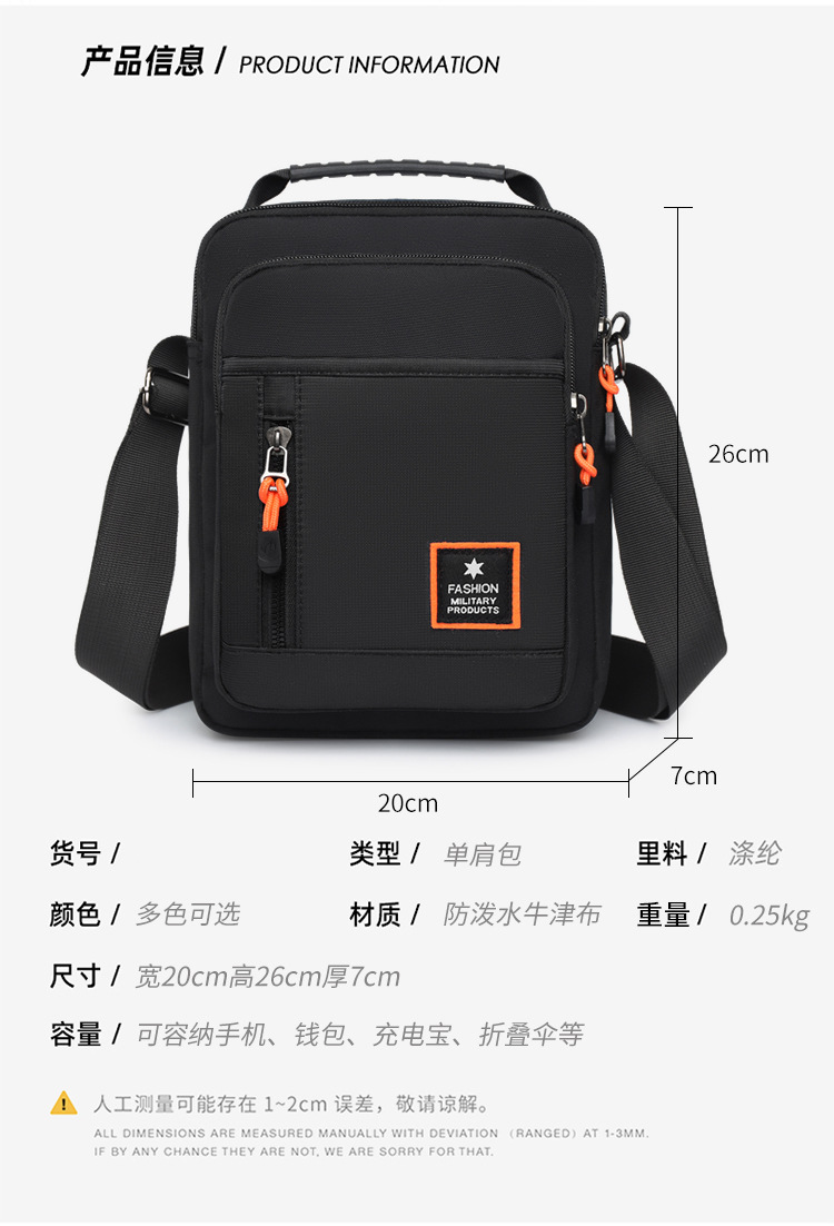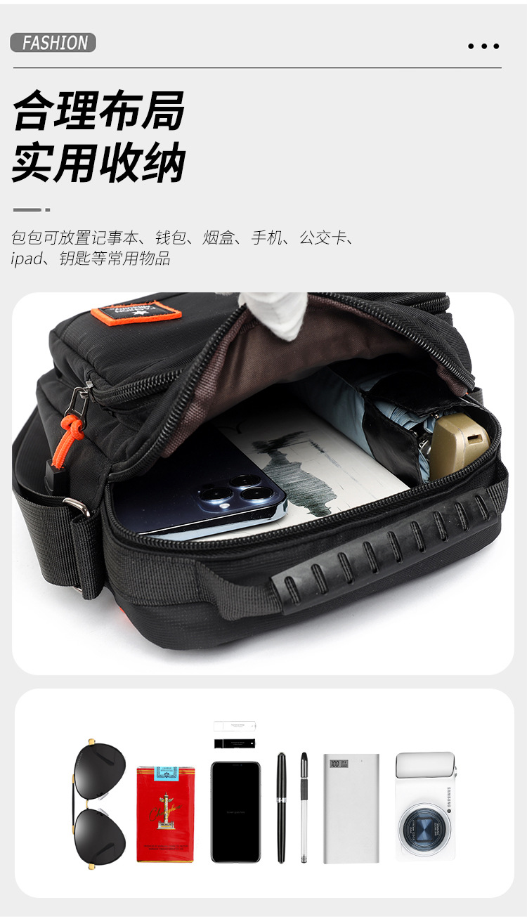 休闲时尚男单肩包多口袋斜挎包简约牛津布男包潮流