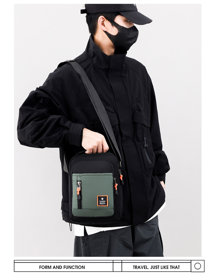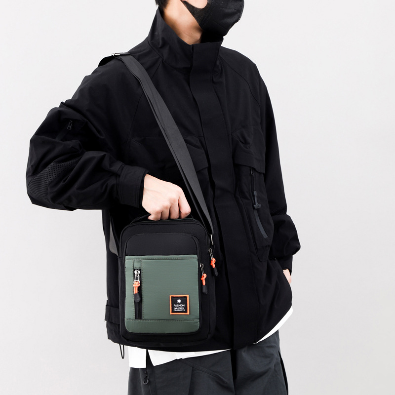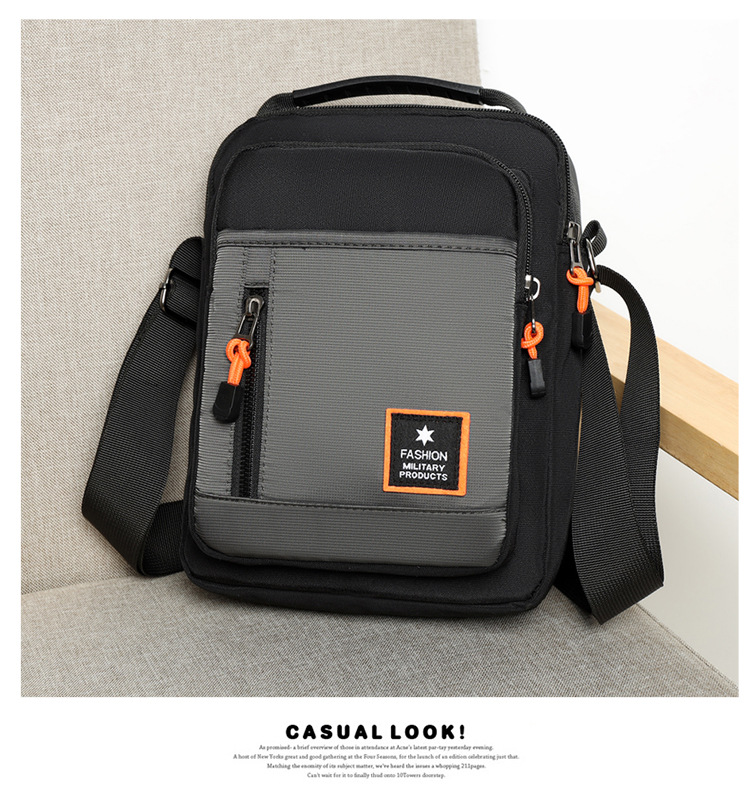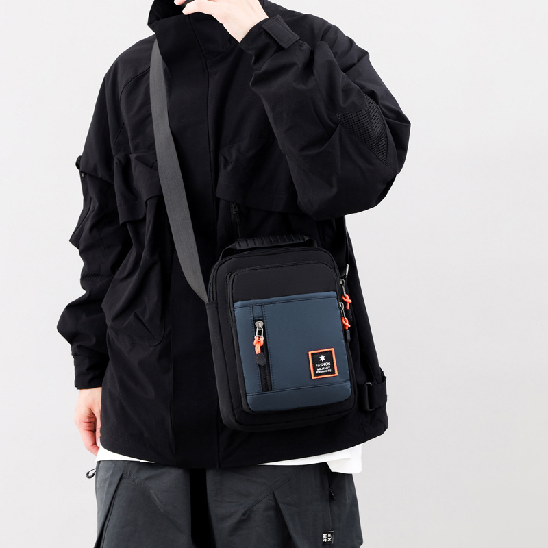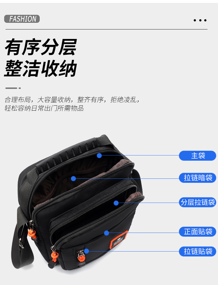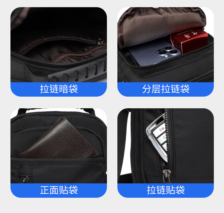 休闲时尚男单肩包多口袋斜挎包简约牛津布男包潮流