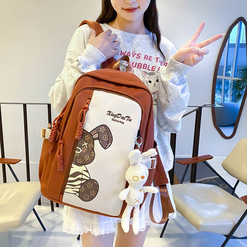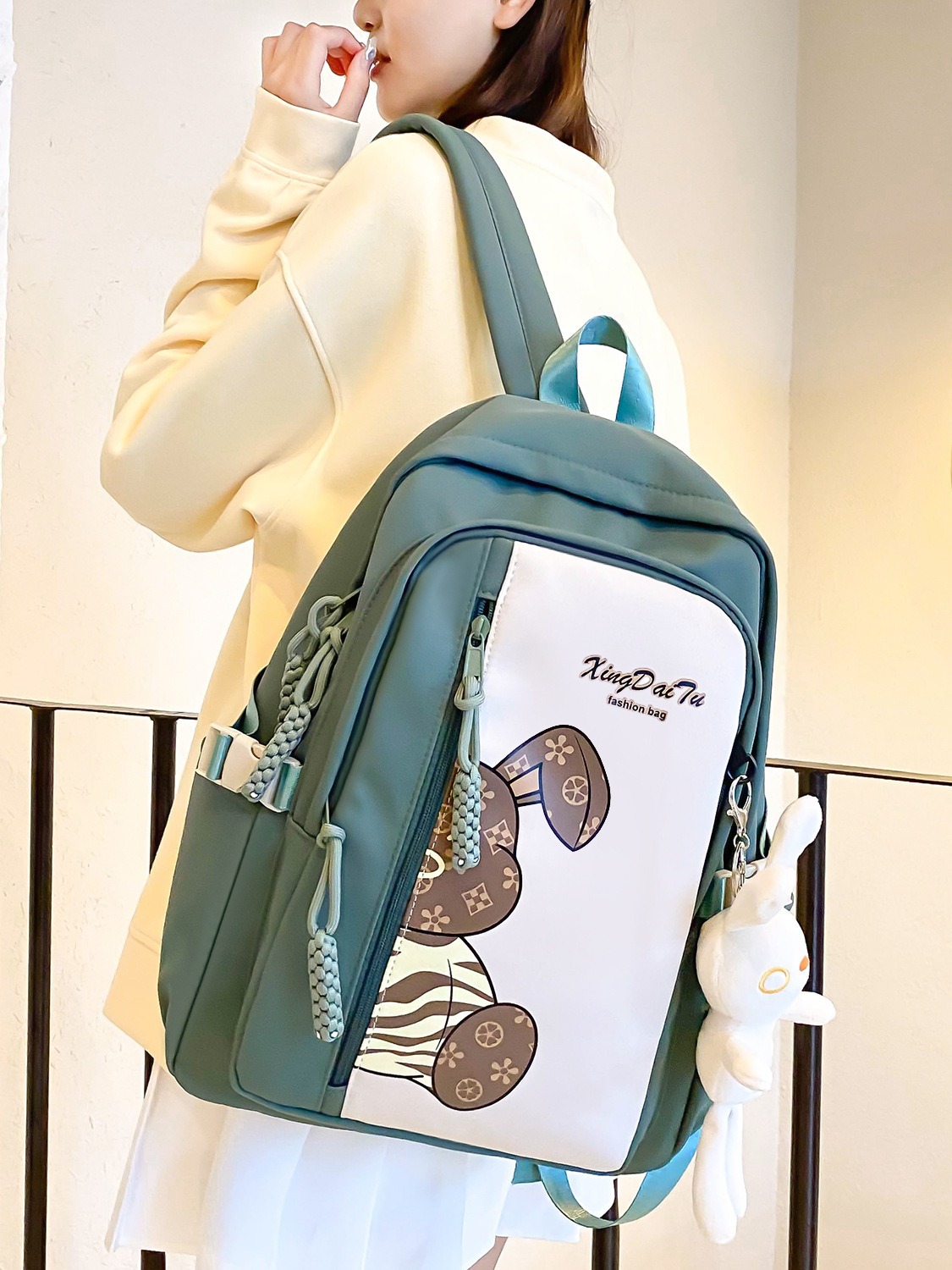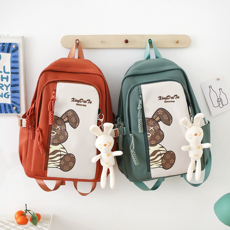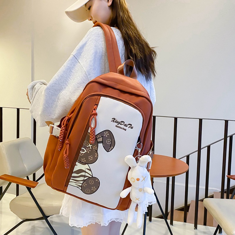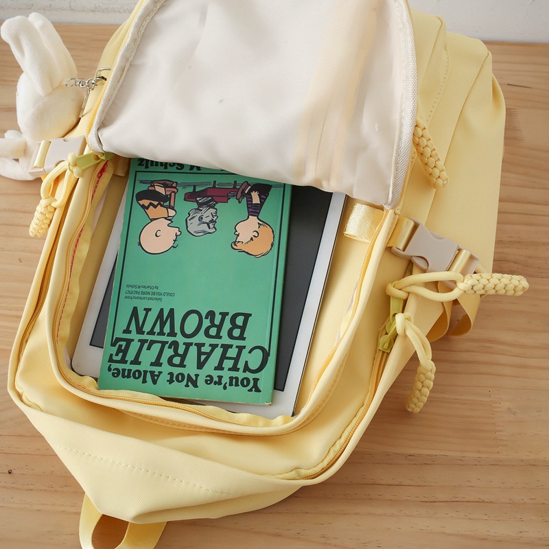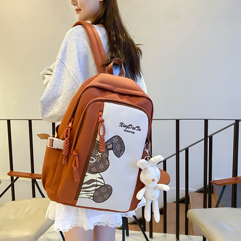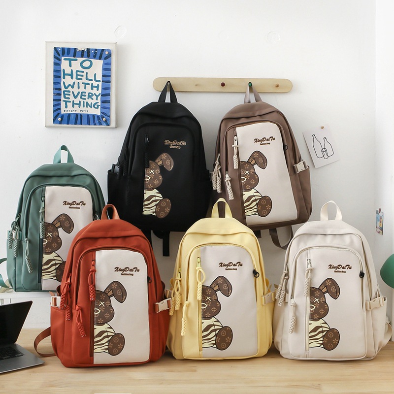 休闲学院风学生书包2024新款撞色小清新帆布双肩包