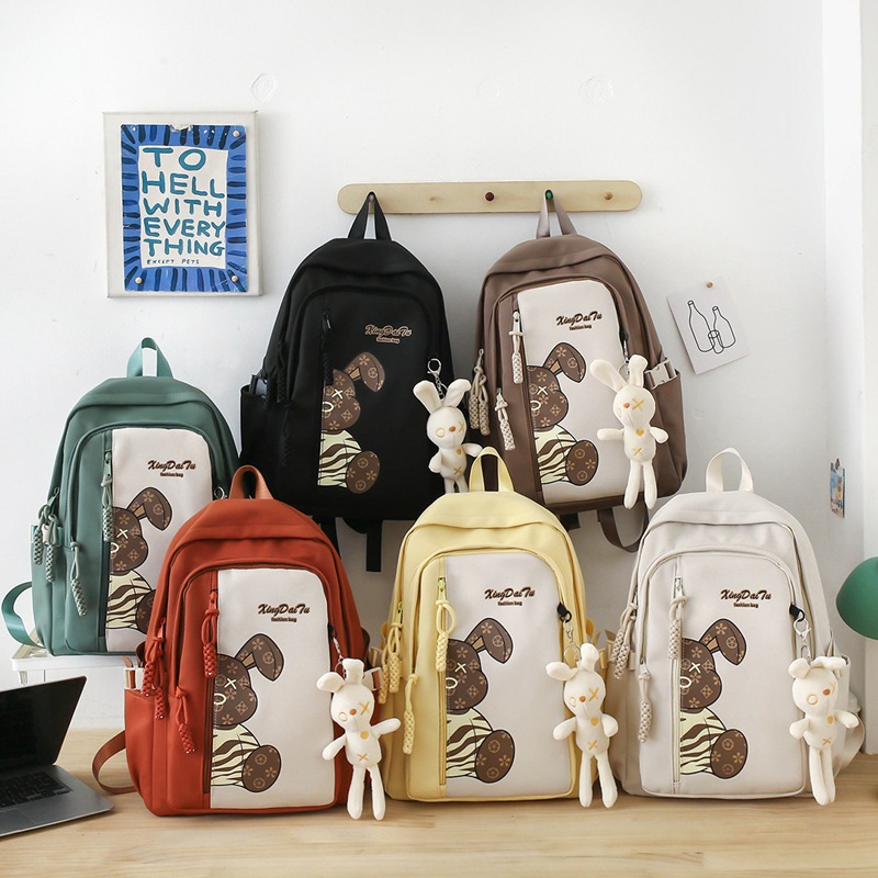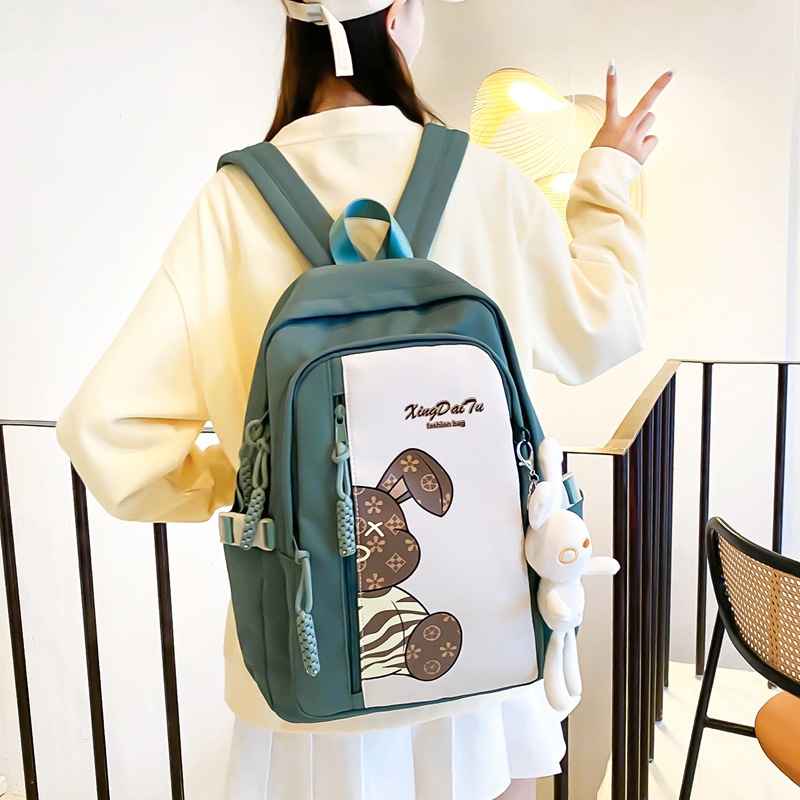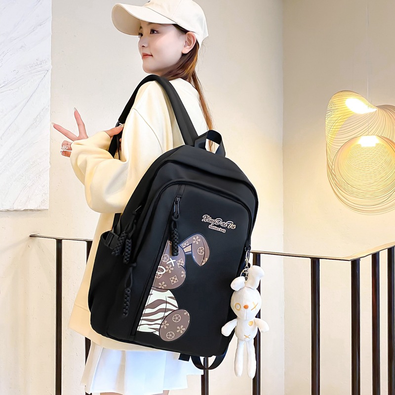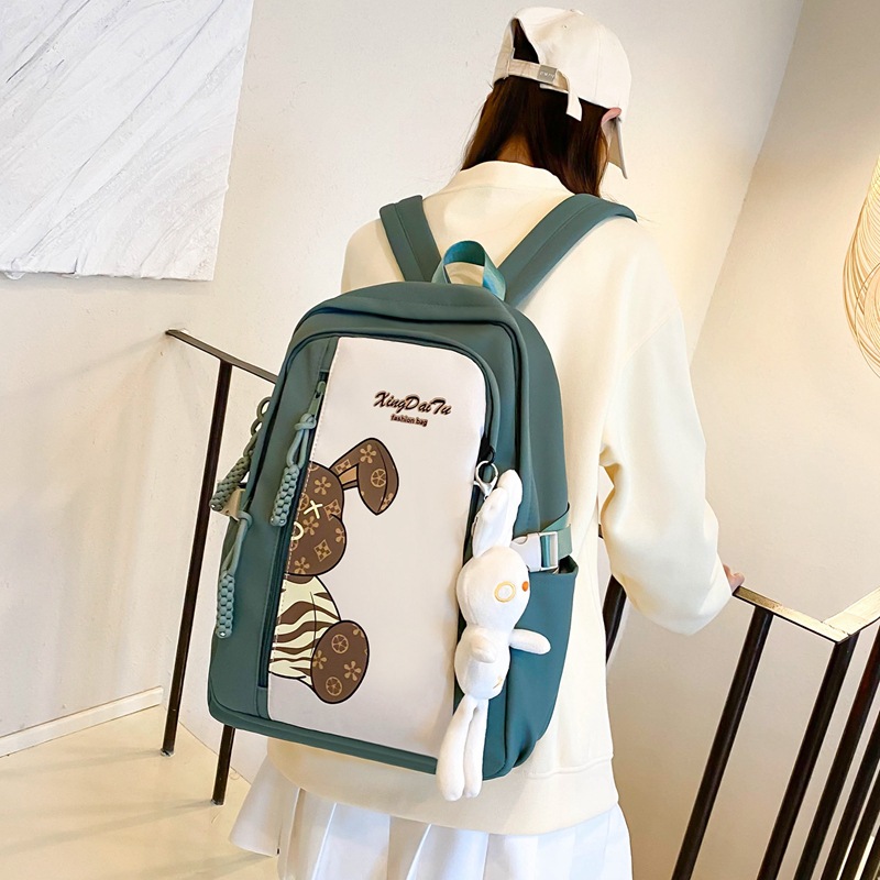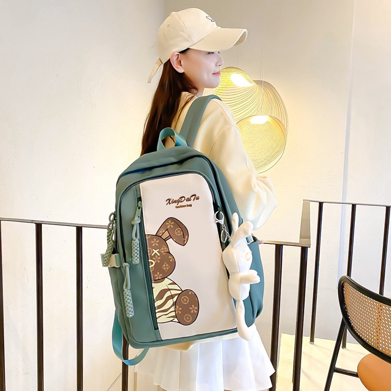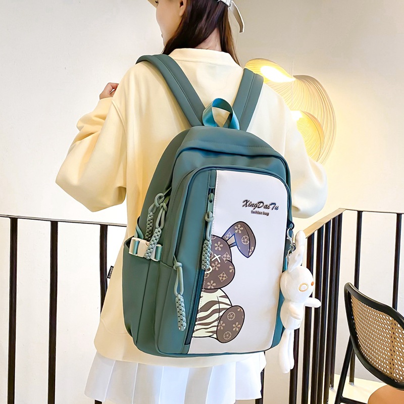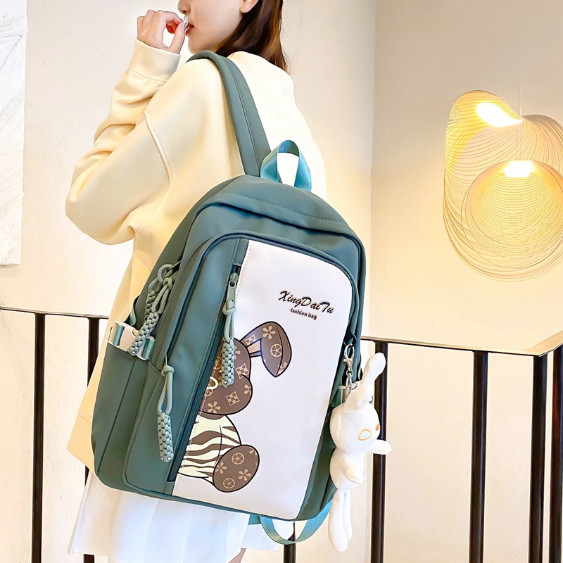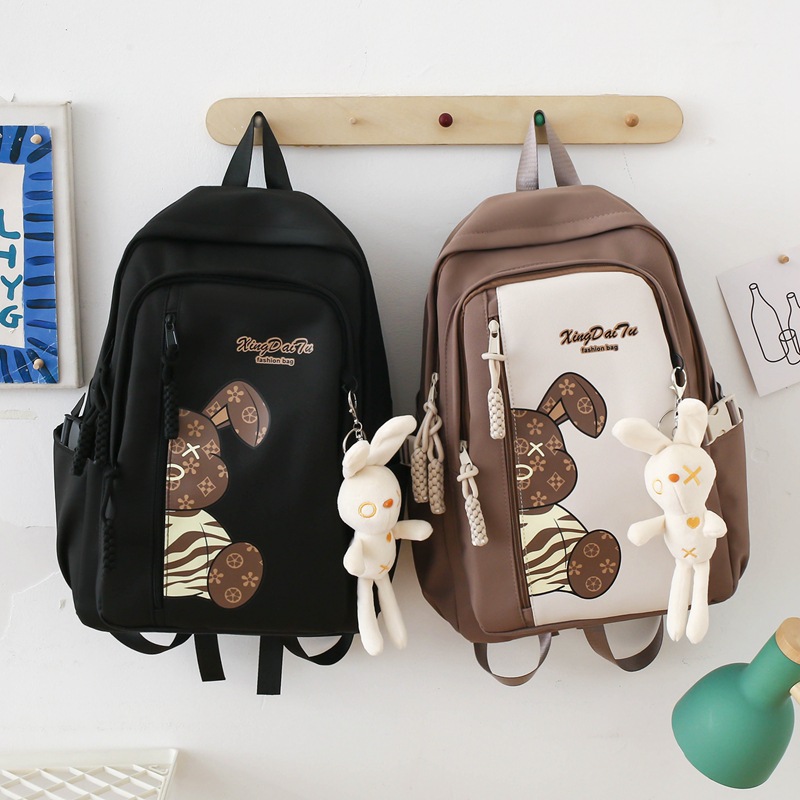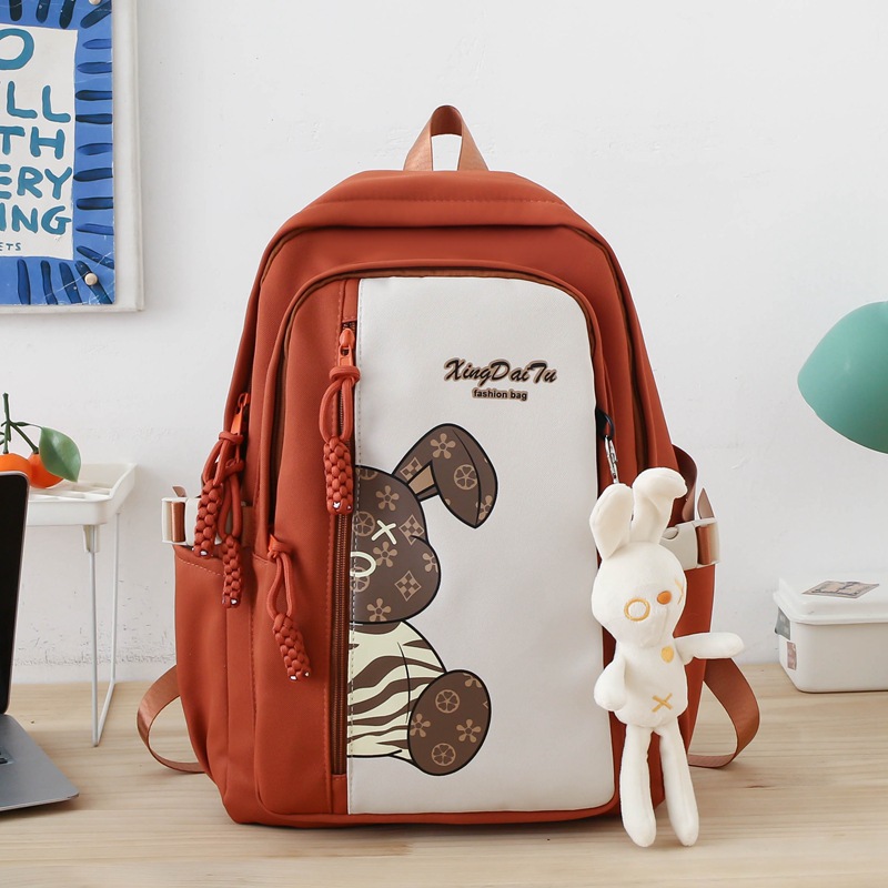 休闲学院风学生书包2024新款撞色小清新帆布双肩包